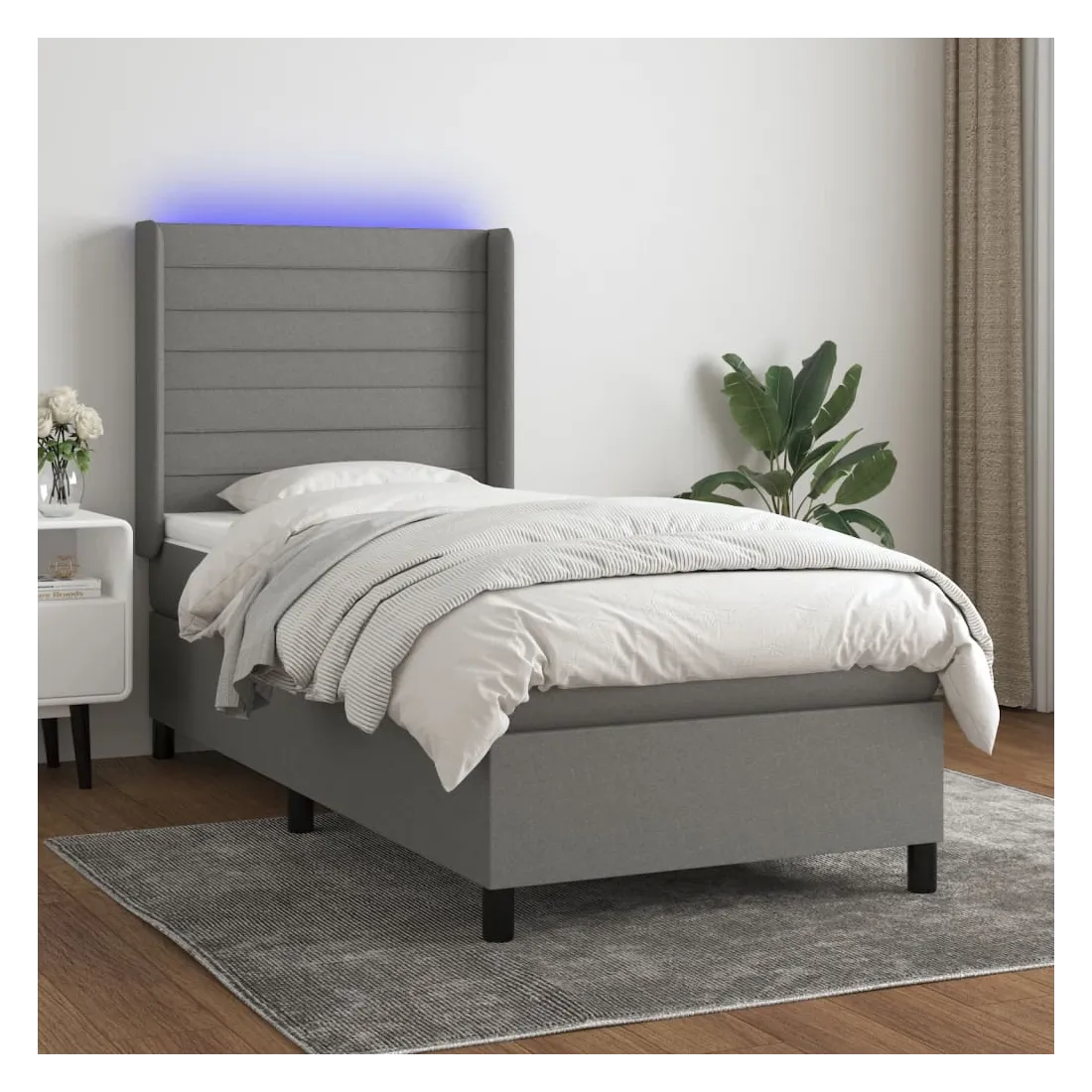 Sommier à lattes de lit matelas LED Gris foncé 90x190cm Tissu