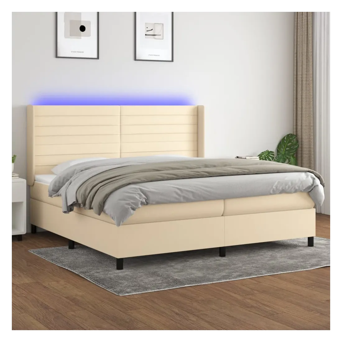 Utilisez ce sommier tapissier avec matelas et LED pour profiter d'un sommeil réparateur ! C'est le point central de votre chambre à coucher. Tissu durable : le tissu présente un aspect simple et épuré, et il est respirant et durable. Tête de lit pratique : la tête de lit est réglable en hauteur selon vos préférences. La tête de lit vous offre un excellent soutien du dos lorsque vous êtes assis dans votre lit pour lire ou regarder la télévision. Bande LED colorée : apportez de l'éclairage dans l'obscurité avec des lumières LED colorées ! Matelas à ressorts ensachés : le ressort ensaché individuel intégré est connu pour sa très haute qualité tout en assurant un haut niveau de durabilité et d'adaptabilité. Il peut absorber efficacement le bruit et les chocs causés par les sauts et les rot