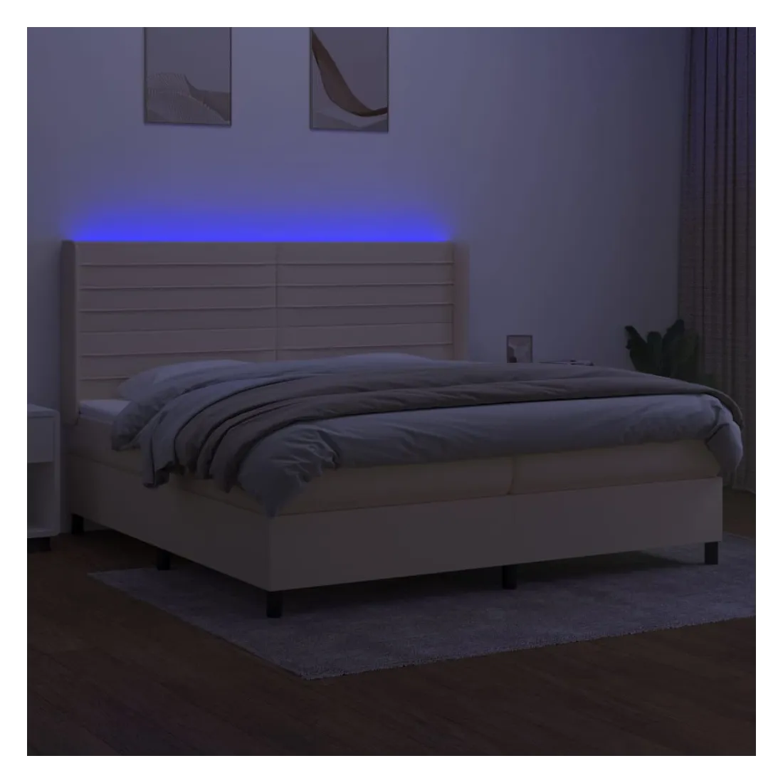 Utilisez ce sommier tapissier avec matelas et LED pour profiter d'un sommeil réparateur ! C'est le point central de votre chambre à coucher. Tissu durable : le tissu présente un aspect simple et épuré, et il est respirant et durable.Tête de lit pratique : la tête de lit est réglable en hauteur selon vos préférences. La tête de lit vous offre un excellent soutien du dos lorsque vous êtes assis dans votre lit pour lire ou regarder la télévision.Bande LED colorée : apportez de l'éclairage dans l'obscurité avec des lumières LED colorées !Matelas à ressorts ensachés : le ressort ensaché individuel intégré est connu pour sa très haute qualité tout en assurant un haut niveau de durabilité et d'adaptabilité. Il peut absorber efficacement le bruit et les chocs causés par les sauts et les rotations.Protège-matelas doux pour la peau : le protège-matelas est recouvert d'un tissu résistant et doux pour la peau, ce qui le rend souple et confortable. Remarque :Pour des raisons d'hygiène, le matelas ne peut pas être retourné si l'emballage est retiré ou ouvert.Seule la partie avec un symbole de ciseaux peut être coupée et seule la partie avec l'USB continuera à fonctionner comme avant.Chaque produit est livré avec un manuel de montage dans la boîte pour un montage facile.Ce produit est doté d'un connecteur USB, mais la source d'alimentation certifiée de USB 5V n'est pas incluse.
