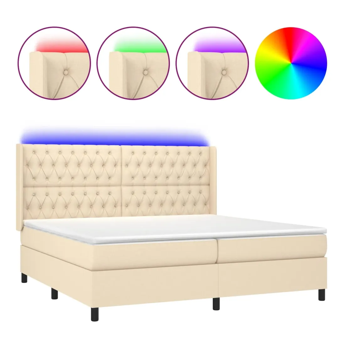 Sommier à lattes de lit matelas et LED Crème 200x200 cm Tissu