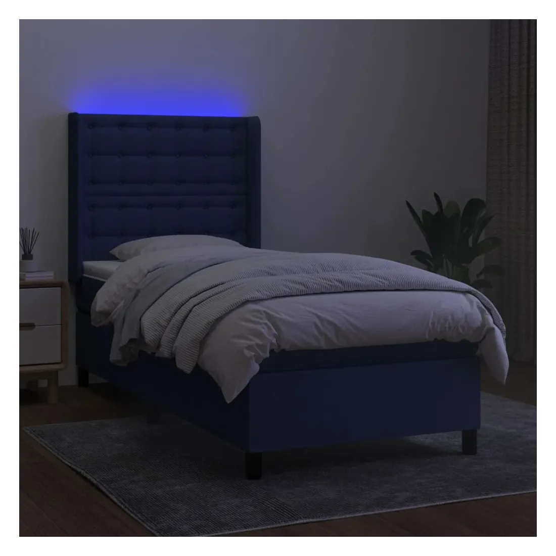 Sommier à lattes de lit matelas et LED Bleu 80x200cm Tissu