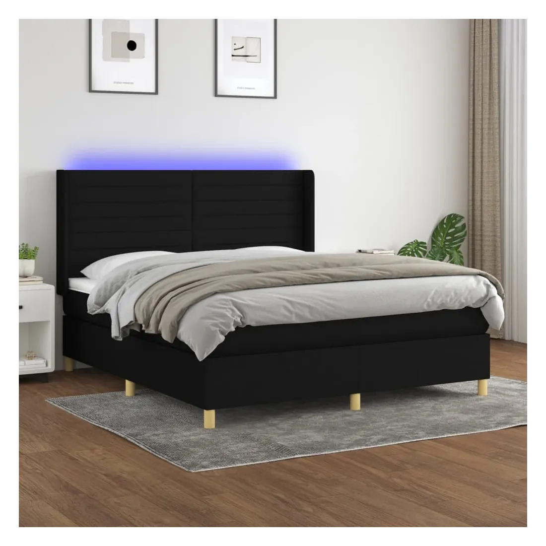 Utilisez ce sommier tapissier avec matelas et LED pour profiter d'un sommeil réparateur ! C'est le point central de votre chambre à coucher. Tissu durable : le tissu présente un aspect simple et épuré, et il est respirant et durable.Tête de lit pratique : la tête de lit est réglable en hauteur selon vos préférences. La tête de lit vous offre un excellent soutien du dos lorsque vous êtes assis dans votre lit pour lire ou regarder la télévision.Bande LED colorée : apportez de l'éclairage dans l'obscurité avec des lumières LED colorées !Matelas à ressorts ensachés : le ressort ensaché individuel intégré est connu pour sa très haute qualité tout en assurant un haut niveau de durabilité et d'adaptabilité. Il peut absorber efficacement le bruit et les chocs causés par les sauts et les rotations.Protège-matelas doux pour la peau : le protège-matelas est recouvert d'un tissu résistant et doux pour la peau, ce qui le rend souple et confortable. Remarque :Pour des raisons d'hygiène, le matelas ne peut pas être retourné si l'emballage est retiré ou ouvert.Seule la partie avec un symbole de ciseaux peut être coupée et seule la partie avec l'USB continuera à fonctionner comme avant.Chaque produit est livré avec un manuel de montage dans la boîte pour un montage facile.Ce produit est doté d'un connecteur USB, mais la source d'alimentation certifiée de USB 5V n'est pas incluse.