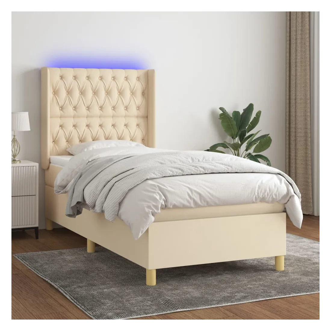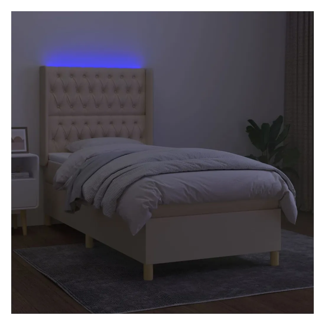 Sommier à lattes de lit matelas et LED Crème 90x200 cm Tissu