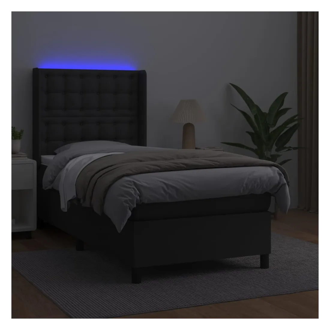 Sommier à lattes de lit matelas LED Noir 90x200 cm Similicuir