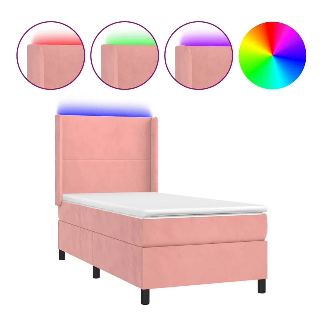 Sommier à lattes de lit matelas et LED Rose 80x200 cm Velours