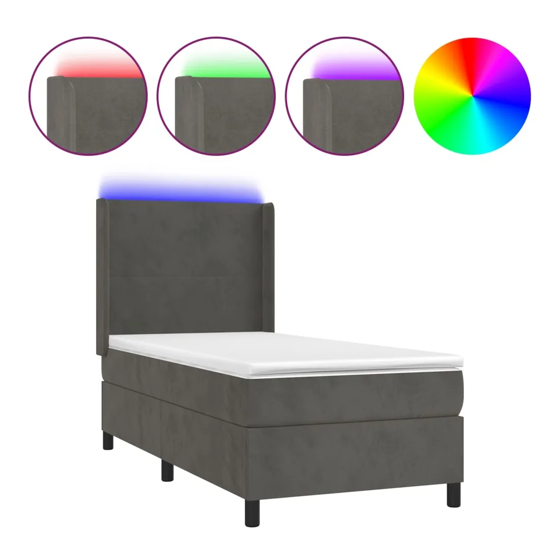 Utilisez ce sommier tapissier avec matelas et LED pour profiter d'un sommeil réparateur ! C'est le point central de votre chambre à coucher. Velours doux : le velours est un tissu doux et luxueux qui se reconnaît à son tas dense de fibres uniformément coupées qui ont une touche lisse. Le tissu en velours présente un toucher doux distinctif, ce qui le rend confortable au toucher.Tête de lit pratique : la tête de lit est réglable en hauteur selon vos préférences. La tête de lit vous offre un excellent soutien du dos lorsque vous êtes assis dans votre lit pour lire ou regarder la télévision.Bande LED colorée : apportez de l'éclairage dans l'obscurité avec des lumières LED colorées !Matelas à ressorts ensachés : le ressort ensaché individuel intégré est connu pour sa très haute qualité tout en assurant un haut niveau de durabilité et d'adaptabilité. Il peut absorber efficacement le bruit et les chocs causés par les sauts et les rotations.Protège-matelas doux pour la peau : le protège-matelas est recouvert d'un tissu résistant et doux pour la peau, ce qui le rend souple et confortable. Remarque :Pour des raisons d'hygiène, le matelas ne peut pas être retourné si l'emballage est retiré ou ouvert.Seule la partie avec un symbole de ciseaux peut être coupée et seule la partie avec l'USB continuera à fonctionner comme avant.Chaque produit est livré avec un manuel de montage dans la boîte pour un montage facile.Ce produit est doté d'un connecteur USB, mais la source d'alimentation certifiée de USB 5V n'est pas incluse.