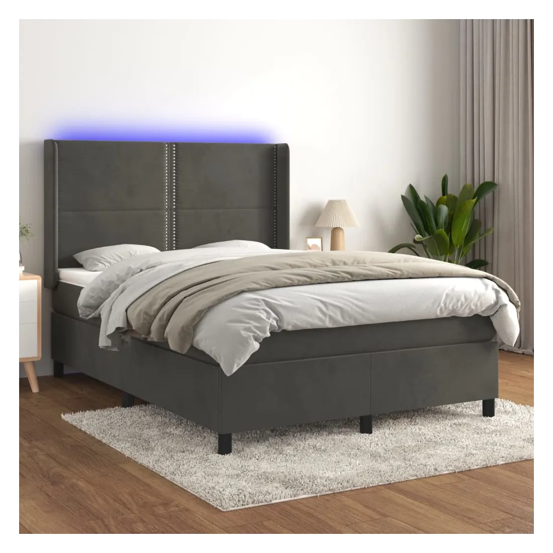 Sommier à lattes de lit matelas et LED Gris foncé 140x200 cm