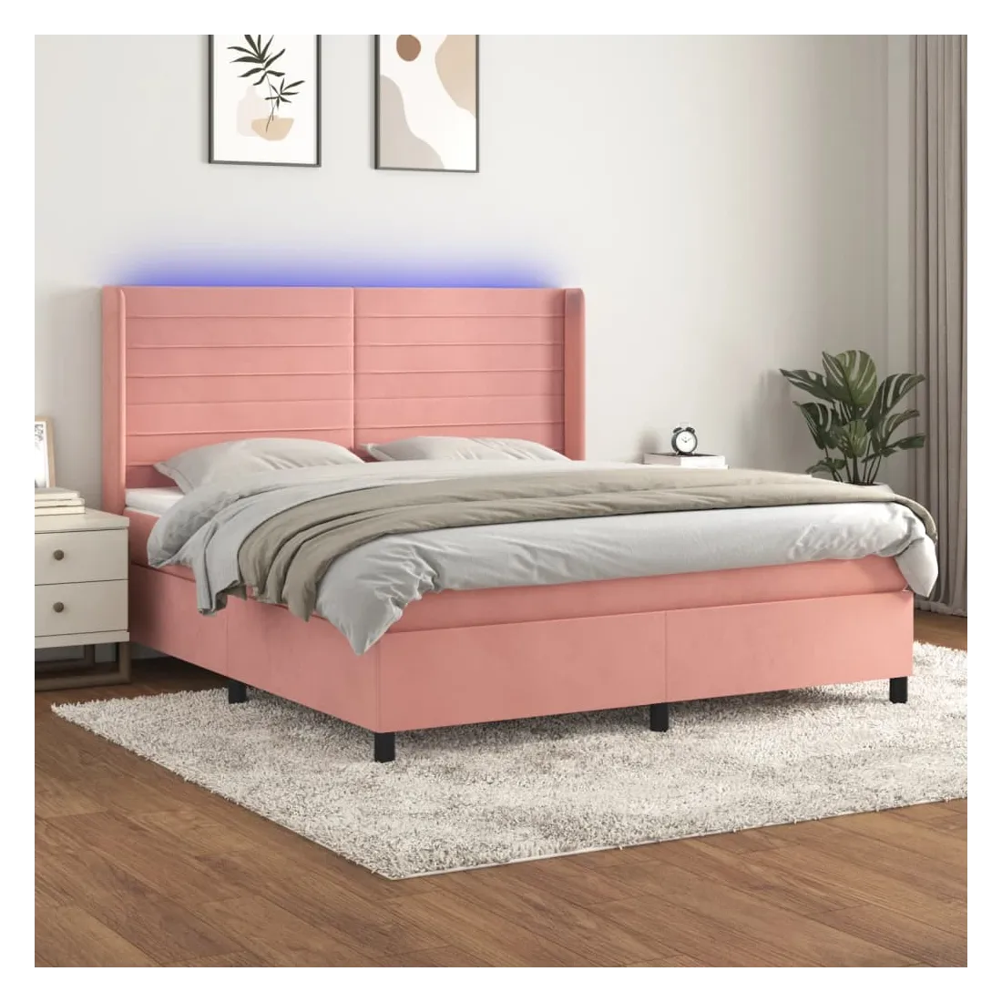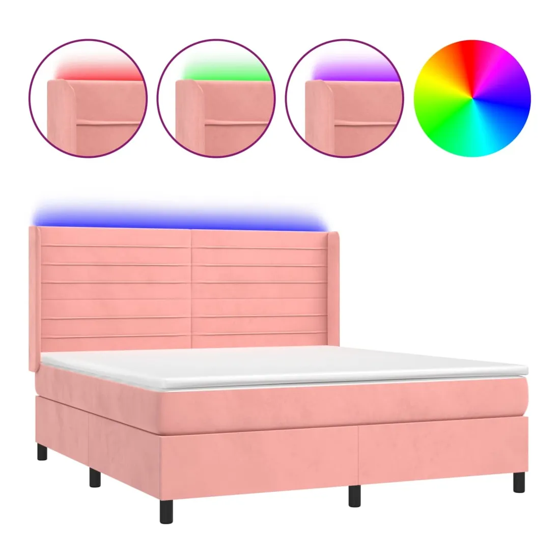 Utilisez ce sommier tapissier avec matelas et LED pour profiter d'un sommeil réparateur ! C'est le point central de votre chambre à coucher. Velours doux : le velours est un tissu doux et luxueux qui se reconnaît à son tas dense de fibres uniformément coupées qui ont une touche lisse. Le tissu en velours présente un toucher doux distinctif, ce qui le rend confortable au toucher.Tête de lit pratique : la tête de lit est réglable en hauteur selon vos préférences. La tête de lit vous offre un excellent soutien du dos lorsque vous êtes assis dans votre lit pour lire ou regarder la télévision.Bande LED colorée : apportez de l'éclairage dans l'obscurité avec des lumières LED colorées !Matelas à ressorts ensachés : le ressort ensaché individuel intégré est connu pour sa très haute qualité tout en assurant un haut niveau de durabilité et d'adaptabilité. Il peut absorber efficacement le bruit et les chocs causés par les sauts et les rotations.Protège-matelas doux pour la peau : le protège-matelas est recouvert d'un tissu résistant et doux pour la peau, ce qui le rend souple et confortable. Remarque :Pour des raisons d'hygiène, le matelas ne peut pas être retourné si l'emballage est retiré ou ouvert.Seule la partie avec un symbole de ciseaux peut être coupée et seule la partie avec l'USB continuera à fonctionner comme avant.Chaque produit est livré avec un manuel de montage dans la boîte pour un montage facile.Ce produit est doté d'un connecteur USB, mais la source d'alimentation certifiée de USB 5V n'est pas incluse.