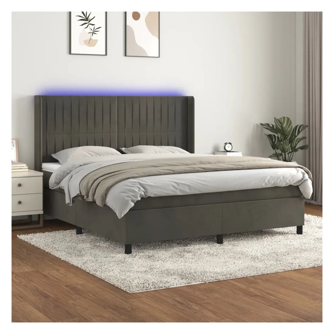 Utilisez ce sommier tapissier avec matelas et LED pour profiter d'un sommeil réparateur ! C'est le point central de votre chambre à coucher. Velours doux : le velours est un tissu doux et luxueux qui se reconnaît à son tas dense de fibres uniformément coupées qui ont une touche lisse. Le tissu en velours présente un toucher doux distinctif, ce qui le rend confortable au toucher.Tête de lit pratique : la tête de lit est réglable en hauteur selon vos préférences. La tête de lit vous offre un excellent soutien du dos lorsque vous êtes assis dans votre lit pour lire ou regarder la télévision.Bande LED colorée : apportez de l'éclairage dans l'obscurité avec des lumières LED colorées !Matelas à ressorts ensachés : le ressort ensaché individuel intégré est connu pour sa très haute qualité tout en assurant un haut niveau de durabilité et d'adaptabilité. Il peut absorber efficacement le bruit et les chocs causés par les sauts et les rotations.Protège-matelas doux pour la peau : le protège-matelas est recouvert d'un tissu résistant et doux pour la peau, ce qui le rend souple et confortable. Remarque :Pour des raisons d'hygiène, le matelas ne peut pas être retourné si l'emballage est retiré ou ouvert.Seule la partie avec un symbole de ciseaux peut être coupée et seule la partie avec l'USB continuera à fonctionner comme avant.Chaque produit est livré avec un manuel de montage dans la boîte pour un montage facile.Ce produit est doté d'un connecteur USB, mais la source d'alimentation certifiée de USB 5V n'est pas incluse.