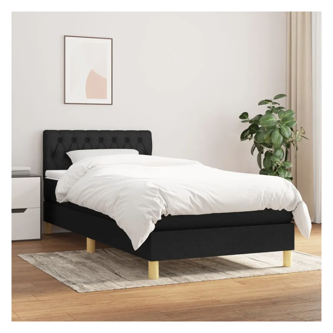 Sommier à lattes de lit avec matelas Noir 90x200 cm Tissu