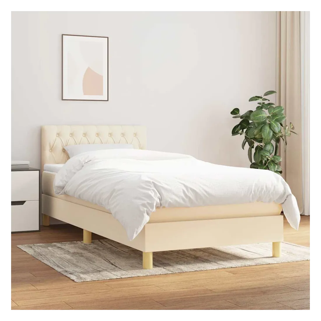 Sommier à lattes de lit et matelas Crème 90x190 cm Tissu