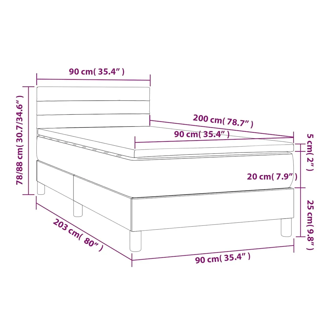 - Dimensions : 90 x 200 x 20 cm (l x L x H)