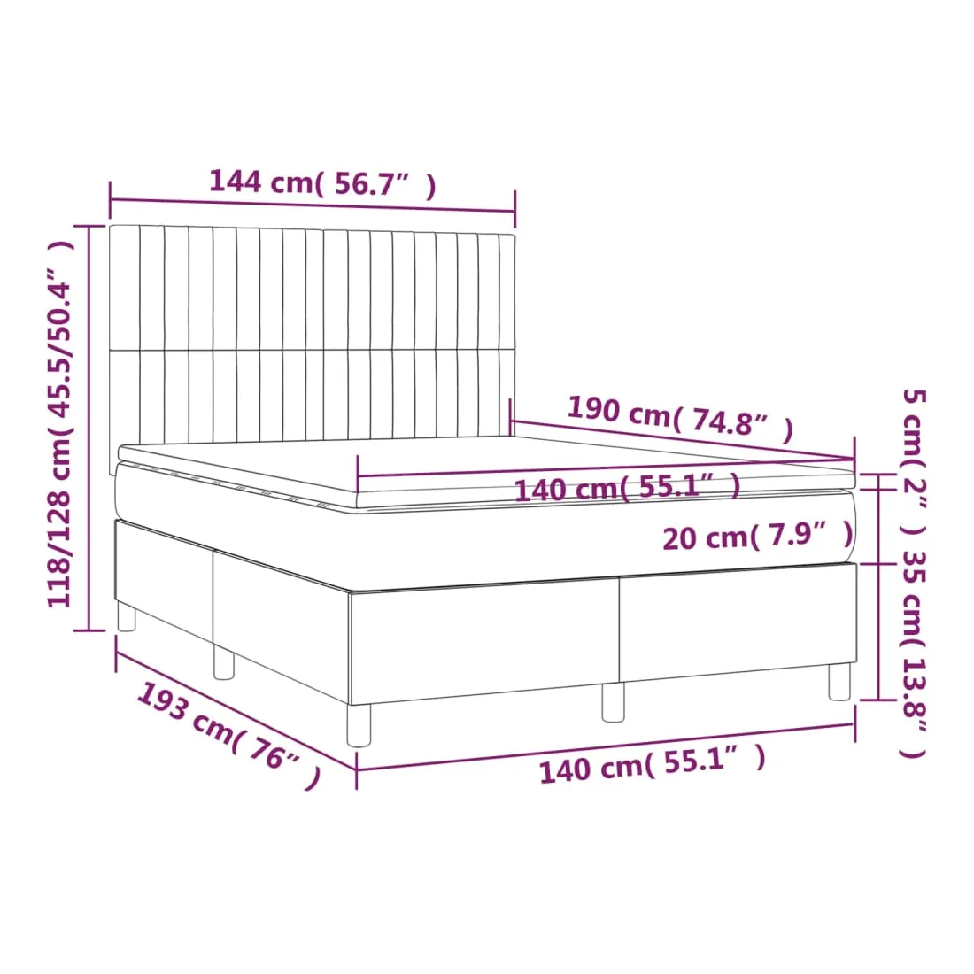 • Dimensions : 140 x 190 x 20 cm (l x L x H)