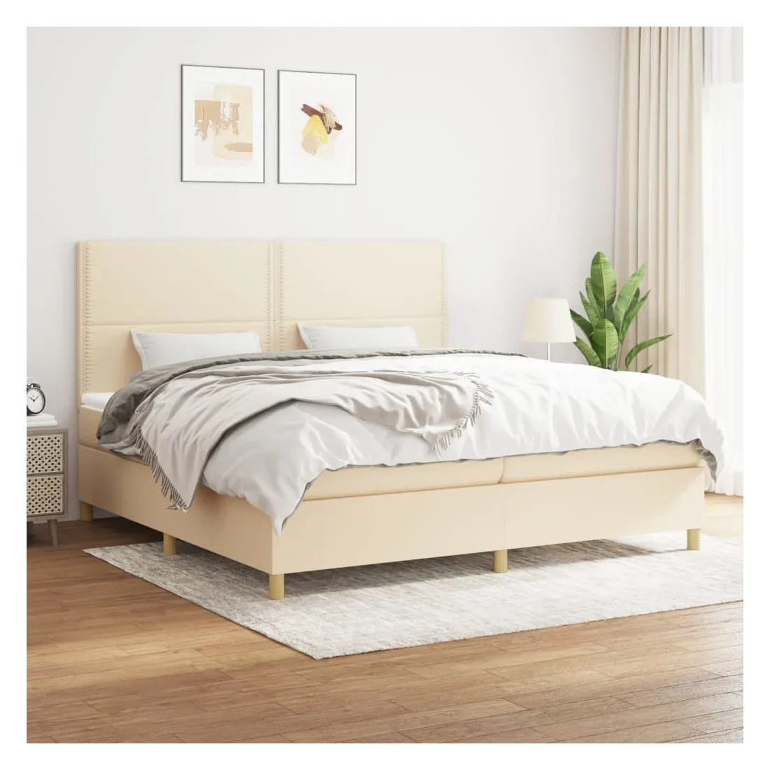Sommier à lattes de lit avec matelas Crème 200x200 cm Tissu