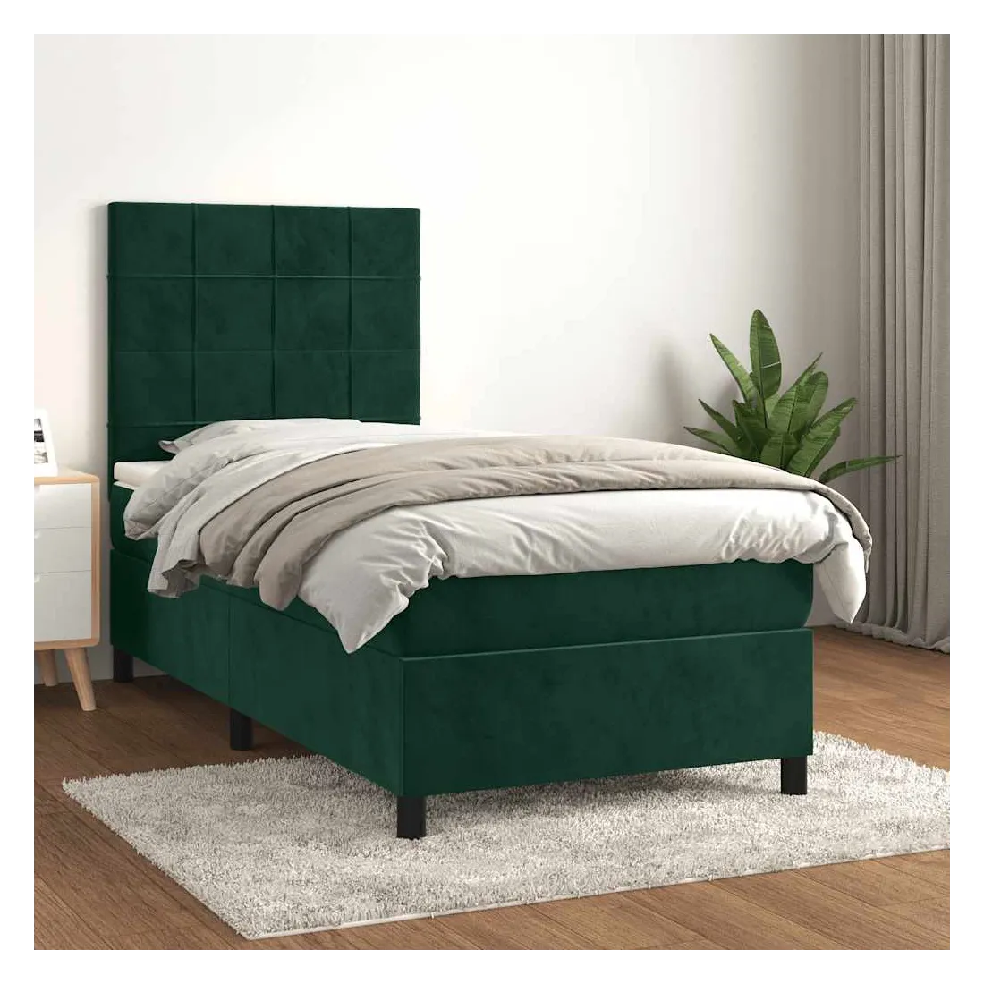 vidaXLUtilisez ce lit à sommier pour profiter d'une nuit de sommeil réparatrice ! Il vous offre une relaxation maximale et un sommeil agréable. Velours doux : le velours est un tissu doux et luxueux qui se reconnaît à son tas dense de fibres uniformément coupées qui ont une touche lisse. Le tissu en velours présente un toucher doux distinctif, ce qui le rend confortable au toucher.Tête de lit pratique : la tête de lit est réglable en hauteur selon vos préférences. La tête de lit vous offre un excellent soutien du dos lorsque vous êtes assis dans votre lit pour lire ou regarder la télévision.Matelas à ressorts ensachés : le ressort ensaché individuel intégré est connu pour sa très haute qualité tout en assurant un haut niveau de durabilité et d'adaptabilité. Il peut absorber efficacement le bruit et les chocs causés par les sauts et les rotations.Support moyen-dur : ce matelas de lit offre une stabilité accrue et juste le niveau de fermeté sans sacrifier le confort. Il est donc idéal pour les personnes qui dorment sur le dos ou sur le ventre.Protège-matelas doux pour la peau : le protège-matelas est recouvert d'un tissu résistant et doux pour la peau, ce qui le rend souple et confortable. Remarque :Pour des raisons d'hygiène, le matelas ne peut pas être retourné si l'emballage est retiré ou ouvert.Chaque produit est livré avec un manuel de montage dans la boîte pour un montage facile.