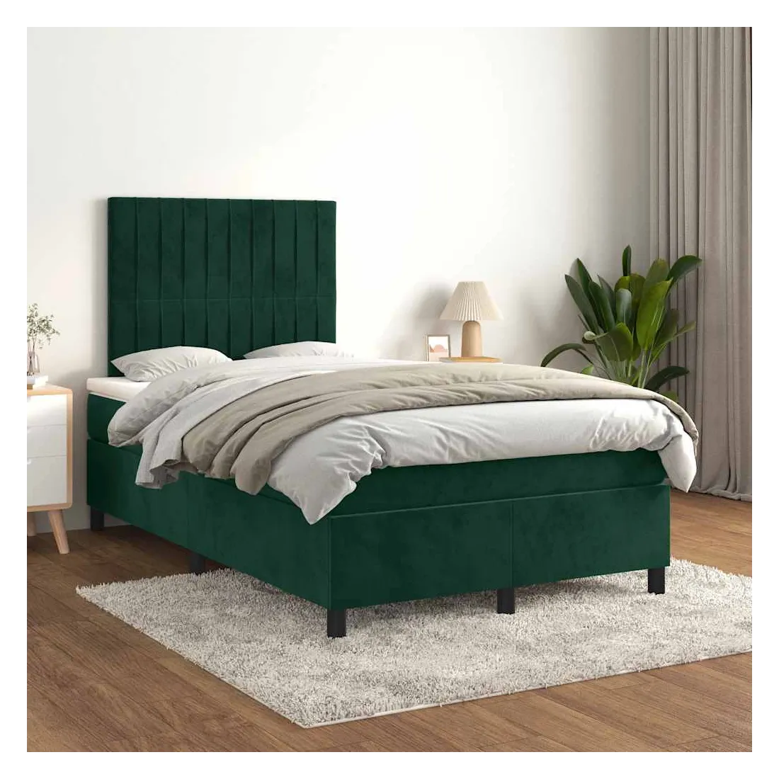 Utilisez ce lit à sommier pour profiter d'une nuit de sommeil réparatrice ! Il vous offre une relaxation maximale et un sommeil agréable. Velours doux : le velours est un tissu doux et luxueux qui se reconnaît à son tas dense de fibres uniformément coupées qui ont une touche lisse. Le tissu en velours présente un toucher doux distinctif, ce qui le rend confortable au toucher.Tête de lit pratique : la tête de lit est réglable en hauteur selon vos préférences. La tête de lit vous offre un excellent soutien du dos lorsque vous êtes assis dans votre lit pour lire ou regarder la télévision.Matelas à ressorts ensachés : le ressort ensaché individuel intégré est connu pour sa très haute qualité tout en assurant un haut niveau de durabilité et d'adaptabilité. Il peut absorber efficacement le bruit et les chocs causés par les sauts et les rotations.Support moyen-dur : ce matelas de lit offre une stabilité accrue et juste le niveau de fermeté sans sacrifier le confort. Il est donc idéal pour les personnes qui dorment sur le dos ou sur le ventre.Protège-matelas doux pour la peau : le protège-matelas est recouvert d'un tissu résistant et doux pour la peau, ce qui le rend souple et confortable. Remarque :Pour des raisons d'hygiène, le matelas ne peut pas être retourné si l'emballage est retiré ou ouvert.Chaque produit est livré avec un manuel de montage dans la boîte pour un montage facile.