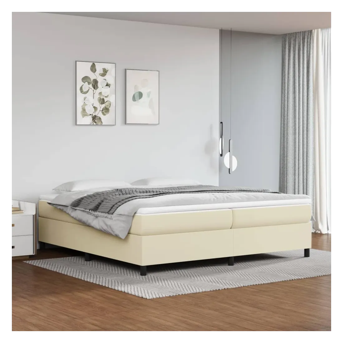 Sommier à lattes de lit avec matelas Crème 200x200cm Similicuir