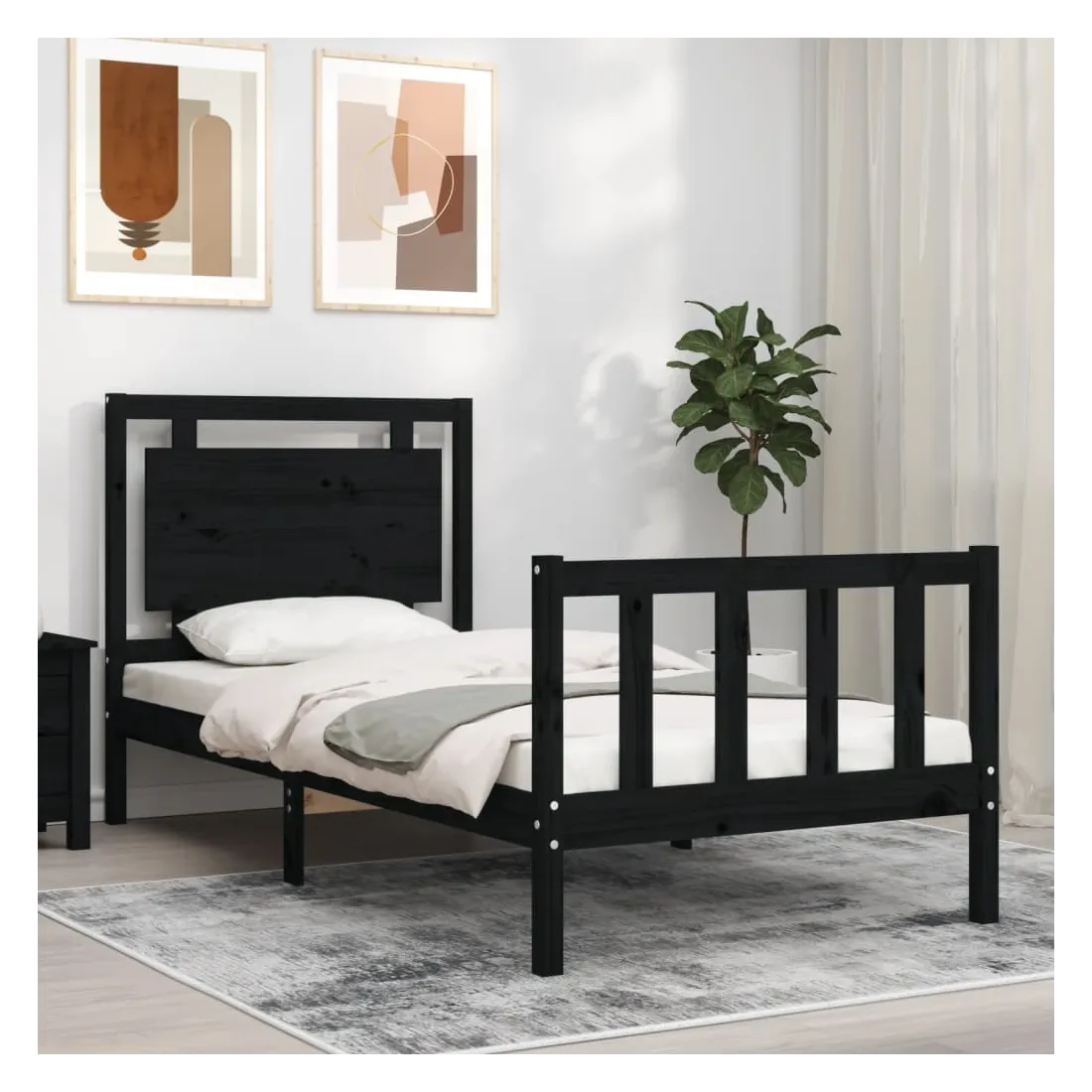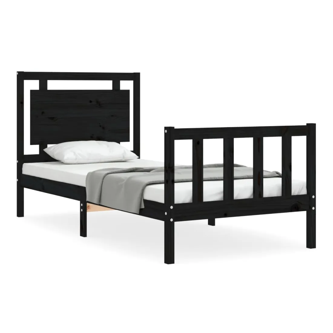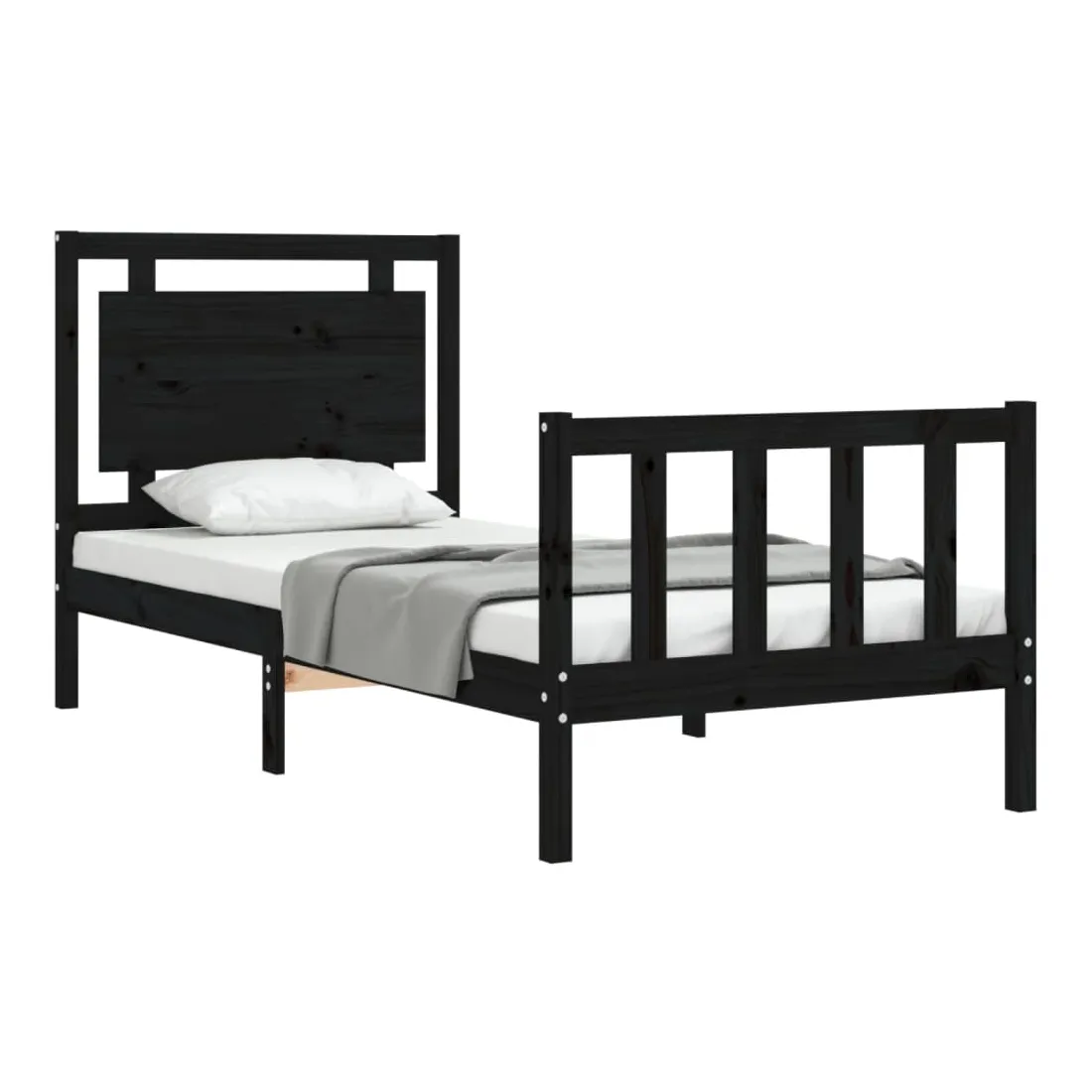 Cadre de lit sans matelas noir bois de pin massif