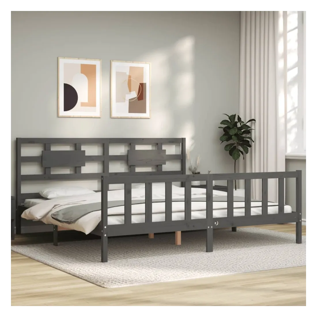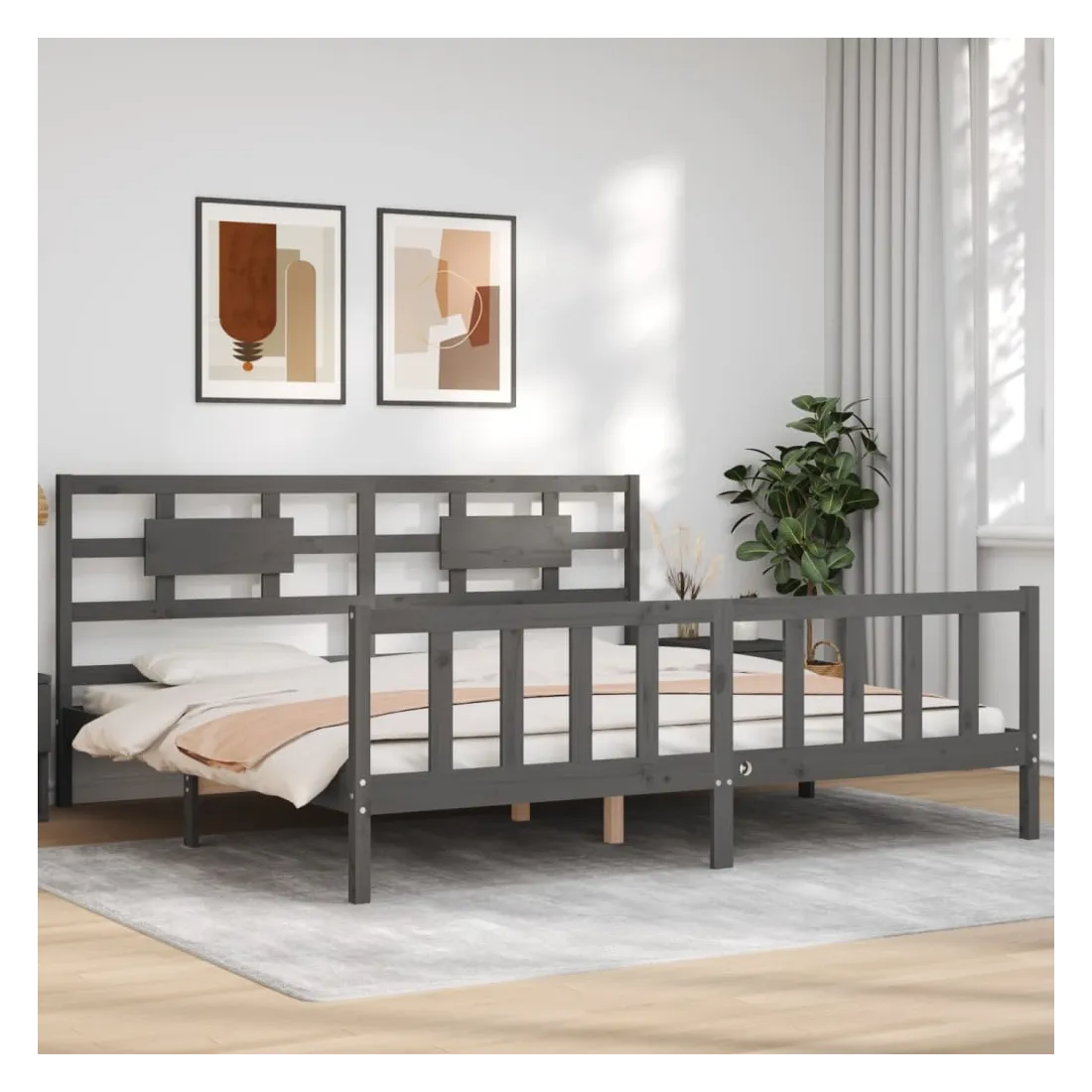 Cadre de lit sans matelas gris 200x200 cm bois massif de pin