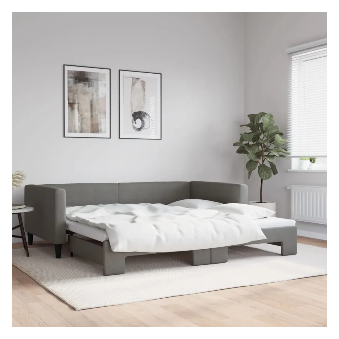 Ce lit de repos 2 en 1 avec lit gigogne, servant à la fois de canapé et de lit, constitue un supplément pratique et accrocheur à votre salon ou chambre à coucher. Lit de repos polyvalent : le canapé-lit fonctionne comme un canapé pendant la journée et se transforme facilement en lit double la nuit en retirant le lit gigogne, offrant une solution pratique pour accueillir des invités et maximiser l'espace. Tissu durable : lit d'appoint est en tissu. Le tissu présente un aspect simple et épuré tout en restant respirant et durable. Construction solide : la structure en bois et en métal du lit assure robustesse et stabilité. Bon à savoir :Les matelas ne sont pas inclus avec ce lit de repos. Nous proposons une sélection variée de matelas. Vous pouvez consulter notre boutique pour les matelas assortis.