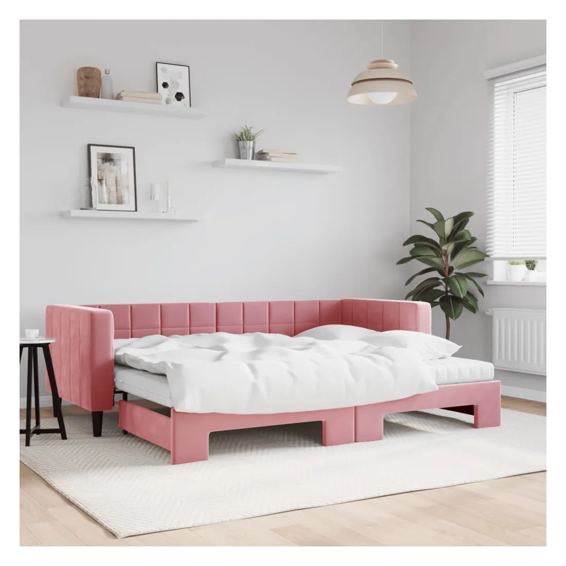 Ce lit de repos 2 en 1 avec lit gigogne, servant à la fois de canapé et de lit, constitue un supplément pratique et accrocheur à votre salon ou chambre à coucher. Lit de repos polyvalent : le canapé-lit fonctionne comme un canapé pendant la journée et se transforme facilement en lit double la nuit en retirant le lit gigogne, offrant une solution pratique pour accueillir des invités et maximiser l'espace.Matelas en mousse confortable : ce lit est fourni avec deux matelas en mousse pour un soutien maximal et un confort optimal.Velours doux et construction solide : ce canapé-lit a un cadre robuste en bois et en métal et est recouvert de velours doux et confortable.Design moderne : le canapé-lit a un design moderne qui présente des lignes épurées, un aspect minimaliste, ainsi que de la lumière naturelle, et ajoutera un style moderne à votre intérieur !