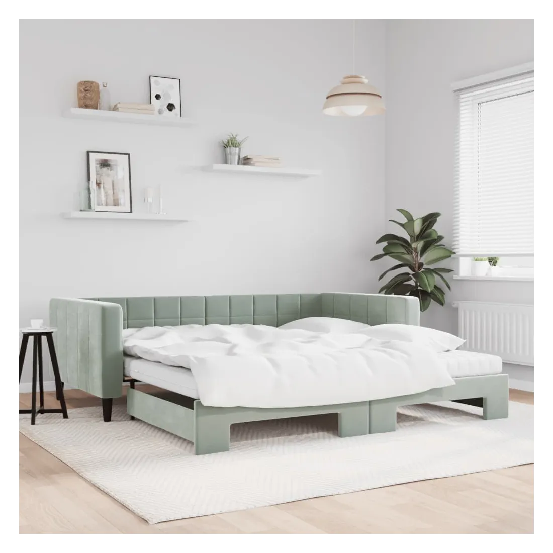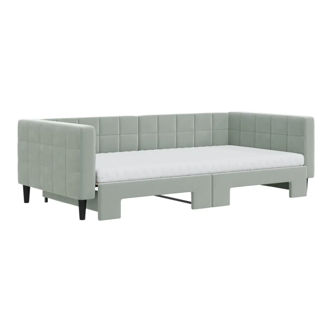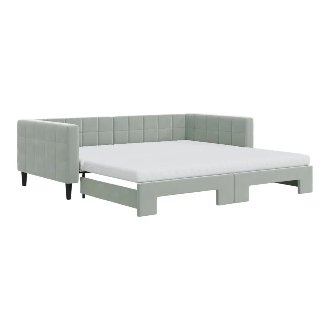 Ce lit de repos 2 en 1 avec lit gigogne, servant à la fois de canapé et de lit, constitue un supplément pratique et accrocheur à votre salon ou chambre à coucher. Lit de repos polyvalent : le canapé-lit fonctionne comme un canapé pendant la journée et se transforme facilement en lit double la nuit en retirant le lit gigogne, offrant une solution pratique pour accueillir des invités et maximiser l'espace.Matelas en mousse confortable : ce lit est fourni avec deux matelas en mousse pour un soutien maximal et un confort optimal.Velours doux et construction solide : ce canapé-lit a un cadre robuste en bois et en métal et est recouvert de velours doux et confortable.Design moderne : le canapé-lit a un design moderne qui présente des lignes épurées, un aspect minimaliste, ainsi que de la lumière naturelle, et ajoutera un style moderne à votre intérieur !
