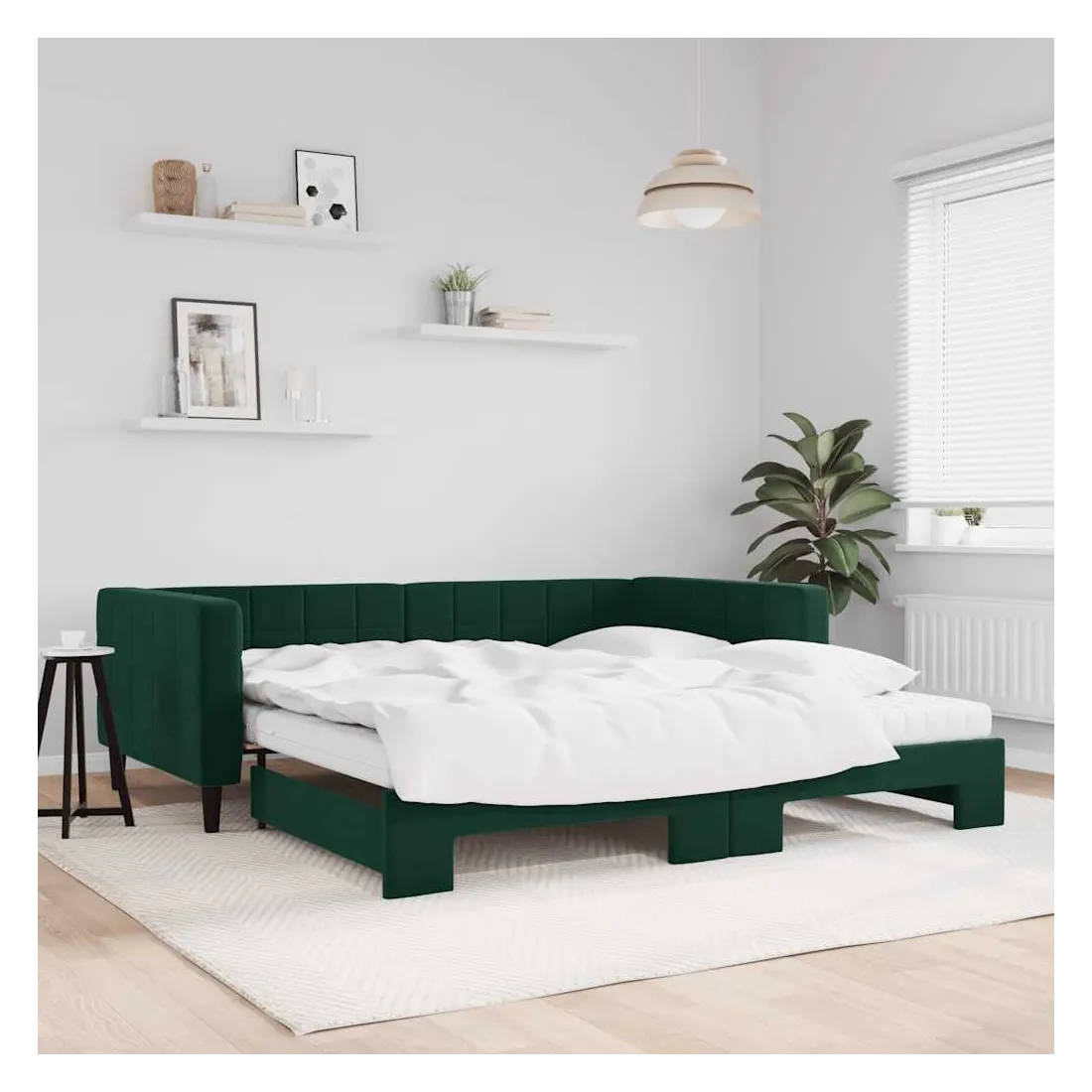 Ce lit de repos 2 en 1 avec lit gigogne, servant à la fois de canapé et de lit, constitue un supplément pratique et accrocheur à votre salon ou chambre à coucher. Lit de repos polyvalent : le canapé-lit fonctionne comme un canapé pendant la journée et se transforme facilement en lit double la nuit en retirant le lit gigogne, offrant une solution pratique pour accueillir des invités et maximiser l'espace.Matelas en mousse confortable : ce lit est fourni avec deux matelas en mousse pour un soutien maximal et un confort optimal.Velours doux et construction solide : ce canapé-lit a un cadre robuste en bois et en métal et est recouvert de velours doux et confortable.Design moderne : le canapé-lit a un design moderne qui présente des lignes épurées, un aspect minimaliste, ainsi que de la lumière naturelle, et ajoutera un style moderne à votre intérieur !