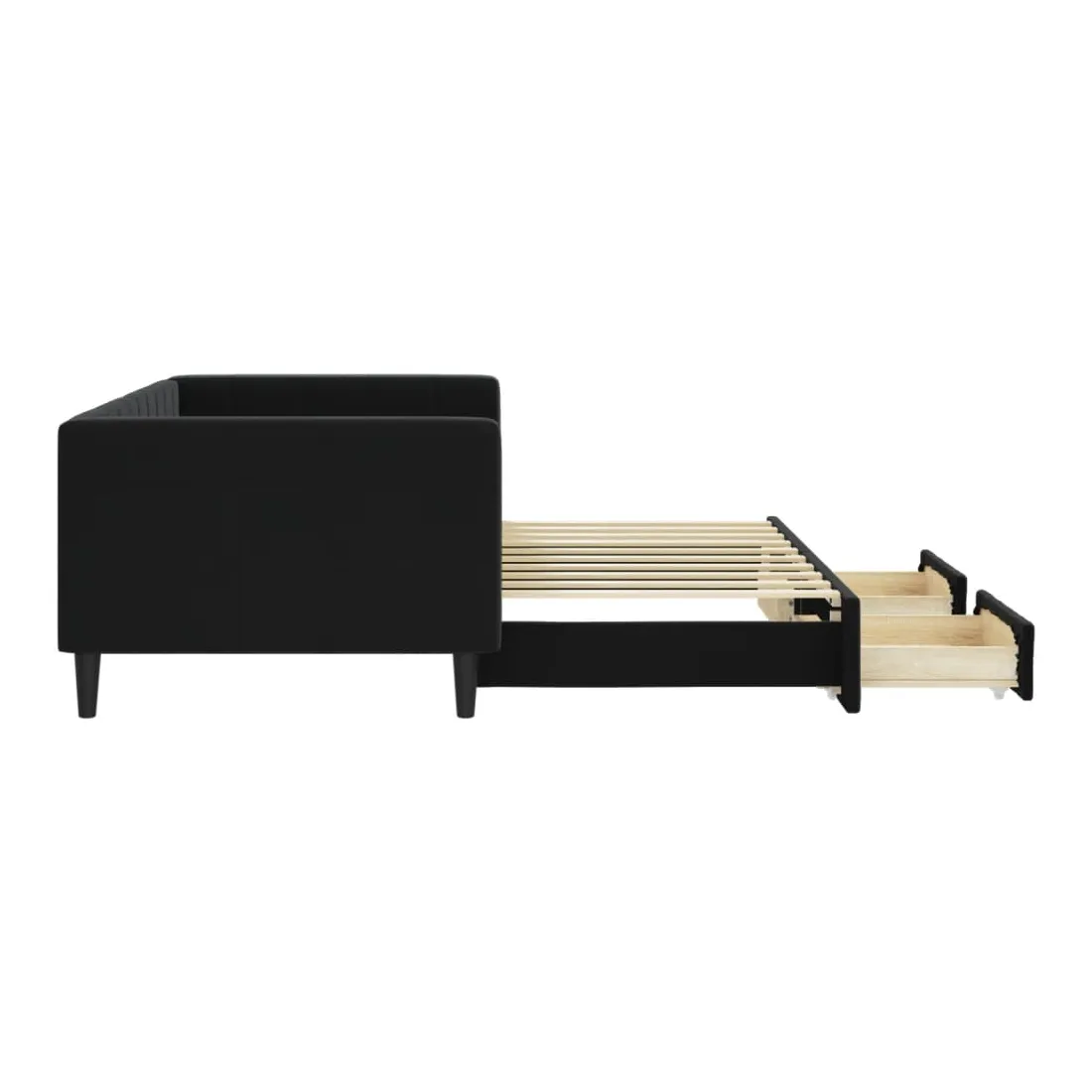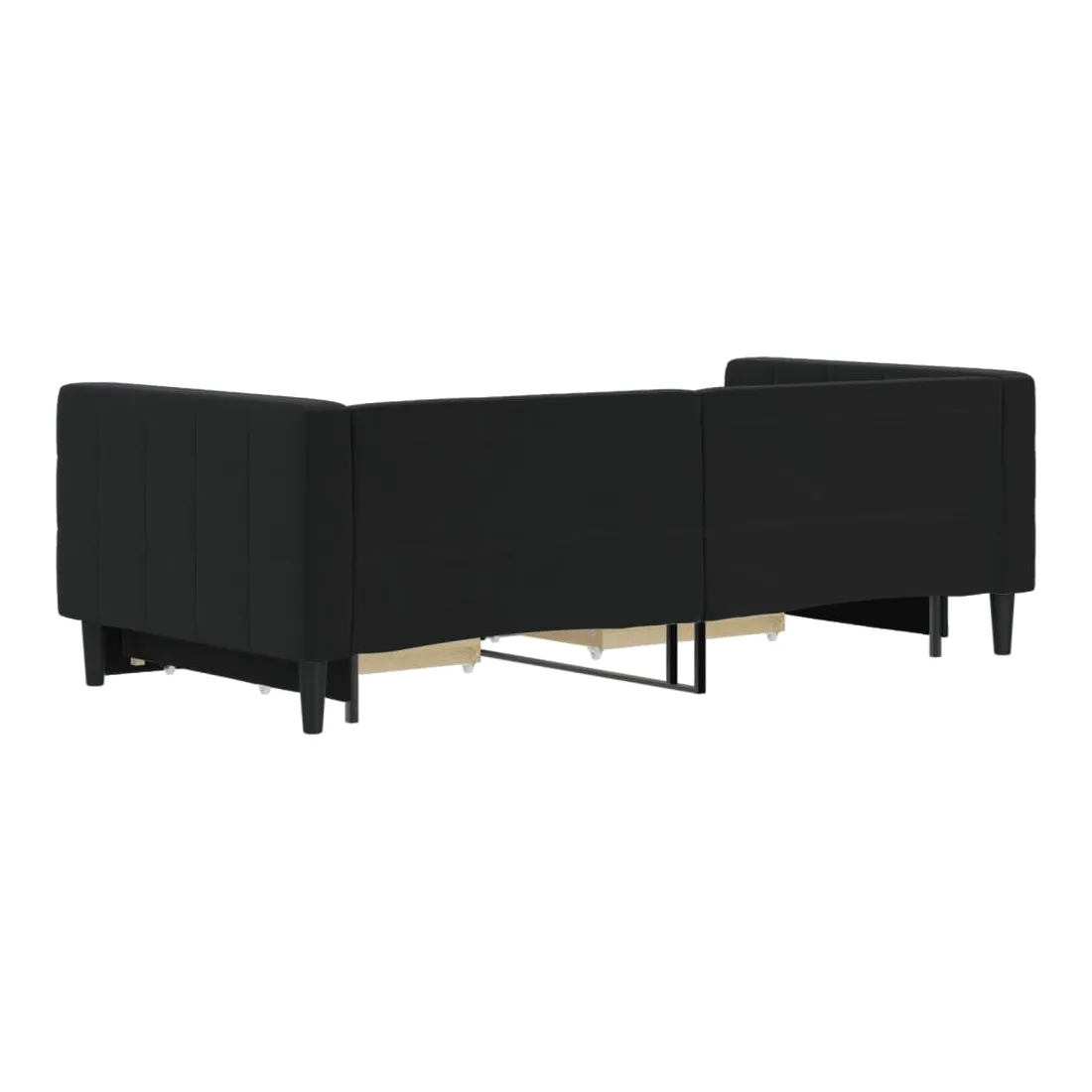 Ce lit de repos 2 en 1 avec lit gigogne, servant à la fois de canapé et de lit, constitue un supplément pratique et accrocheur à votre salon ou chambre à coucher. Lit de repos polyvalent : le canapé-lit fonctionne comme un canapé pendant la journée et se transforme facilement en lit double la nuit en retirant le lit gigogne, offrant une solution pratique pour accueillir des invités et maximiser l'espace.Grand espace de rangement : ce lit d'appoint dispose de deux tiroirs à roulettes qui offrent suffisamment d'espace pour ranger vos vêtements, chaussettes, jouets, coussins, etc.Velours doux et construction solide : ce canapé-lit a un cadre robuste en bois et en métal et est recouvert de velours doux et confortable.Design moderne : le canapé-lit a un design moderne qui présente des lignes épurées, un aspect minimaliste, ainsi que de la lumière naturelle, et ajoutera un style moderne à votre intérieur ! Bon à savoir :Les matelas ne sont pas inclus avec ce lit. Nous proposons une sélection variée de matelas. Vous pouvez consulter notre boutique pour trouver les matelas assortis.