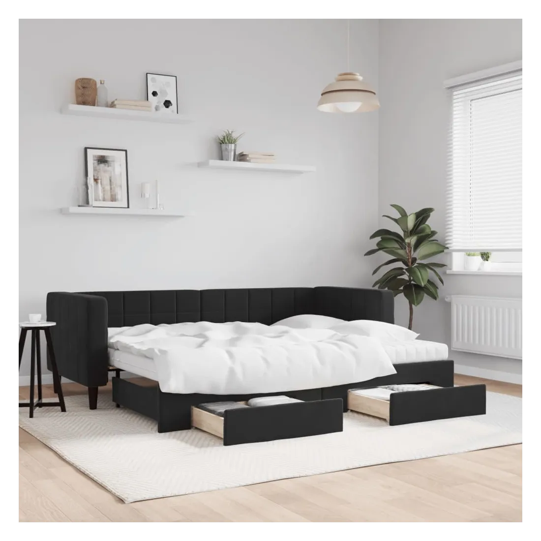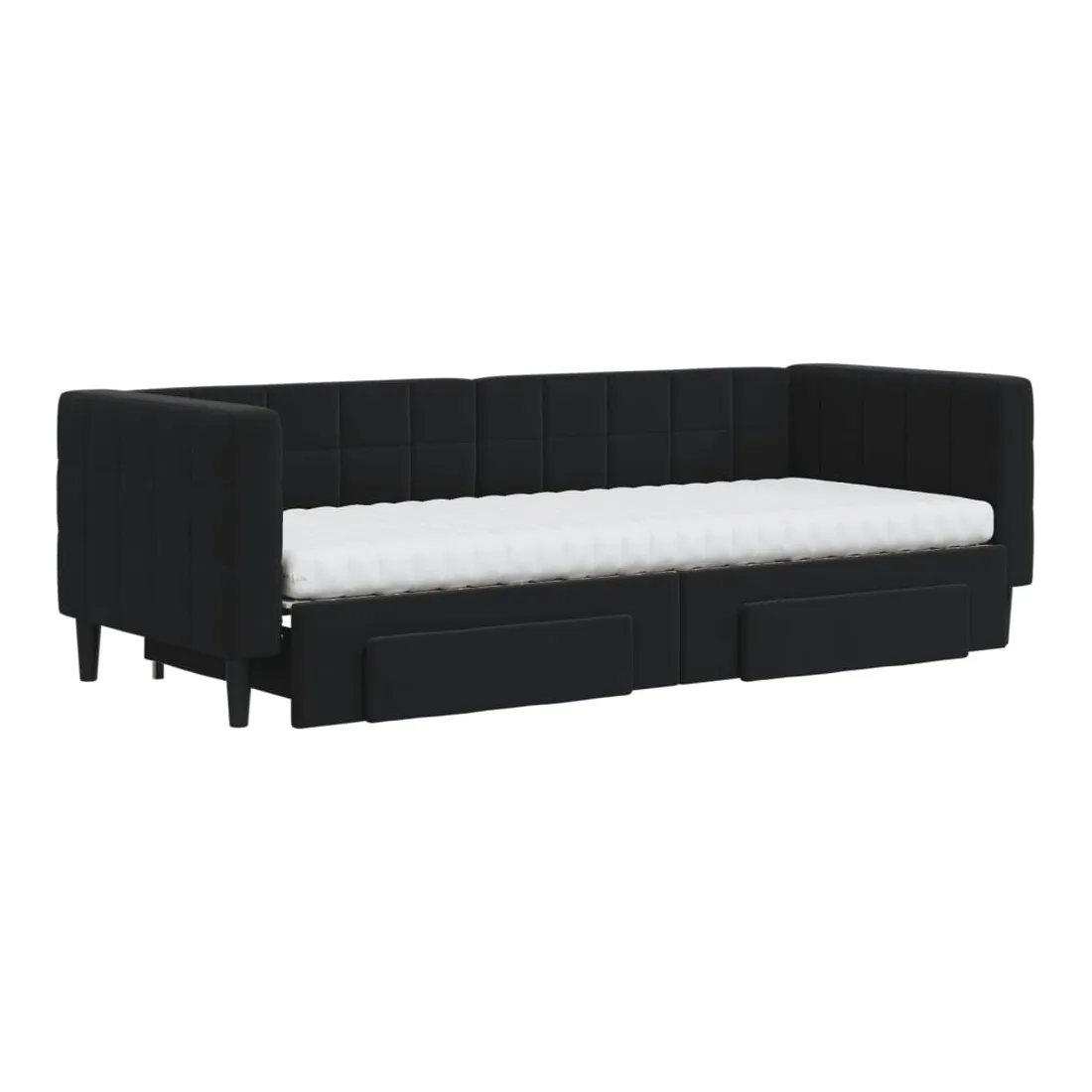 Ce lit de repos 2 en 1 avec lit gigogne, servant à la fois de canapé et de lit, constitue un supplément pratique et accrocheur à votre salon ou chambre à coucher. Lit de repos polyvalent : le canapé-lit fonctionne comme un canapé pendant la journée et se transforme facilement en lit double la nuit en retirant le lit gigogne, offrant une solution pratique pour accueillir des invités et maximiser l'espace.Grand espace de rangement : ce lit d'appoint dispose de deux tiroirs à roulettes qui offrent suffisamment d'espace pour ranger vos vêtements, chaussettes, jouets, coussins, etc.Matelas en mousse confortable : ce lit est fourni avec deux matelas en mousse pour un soutien maximal et un confort optimal.Velours doux et construction solide : ce canapé-lit a un cadre robuste en bois et en métal et est recouvert de velours doux et confortable.