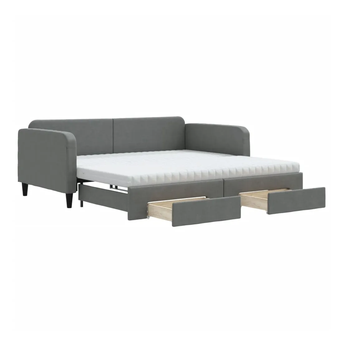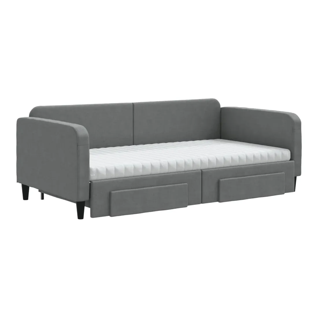 Ce lit de repos 2 en 1 avec lit gigogne, servant à la fois de canapé et de lit, constitue un supplément pratique et accrocheur à votre salon ou chambre à coucher. Lit de repos polyvalent : le canapé-lit fonctionne comme un canapé pendant la journée et se transforme facilement en lit double la nuit en retirant le lit gigogne, offrant une solution pratique pour accueillir des invités et maximiser l'espace.Grand espace de rangement : ce lit d'appoint dispose de deux tiroirs à roulettes qui offrent suffisamment d'espace pour ranger vos vêtements, chaussettes, jouets, coussins, etc.Matelas en mousse confortable : ce lit est fourni avec deux matelas en mousse pour un soutien maximal et un confort optimal.Tissu durable et construction solide : ce canapé-lit a une structure robuste en bois et en métal et est recouvert d'un tissu durable et confortable.