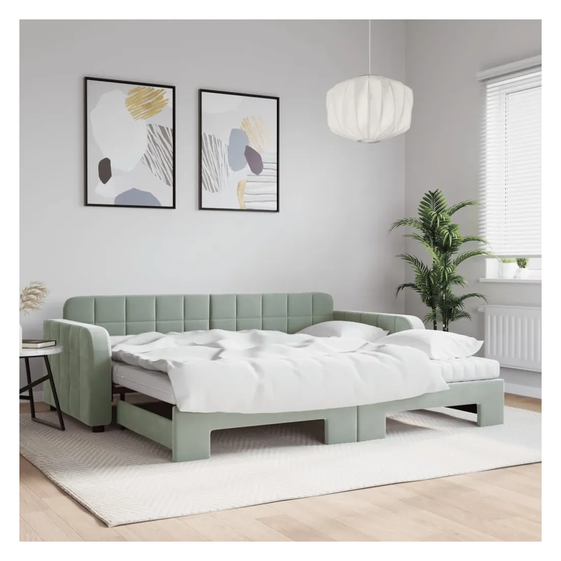 Ce lit de repos 2 en 1 avec lit gigogne, servant à la fois de canapé et de lit, constitue un supplément pratique et accrocheur à votre salon ou chambre à coucher. Lit de repos polyvalent : le canapé-lit fonctionne comme un canapé pendant la journée et se transforme facilement en lit double la nuit en retirant le lit gigogne, offrant une solution pratique pour accueillir des invités et maximiser l'espace.Matelas en mousse confortable : ce lit est fourni avec deux matelas en mousse pour un soutien maximal et un confort optimal.Velours doux et construction solide : ce canapé-lit a un cadre robuste en bois et en métal et est recouvert de velours doux et confortable.