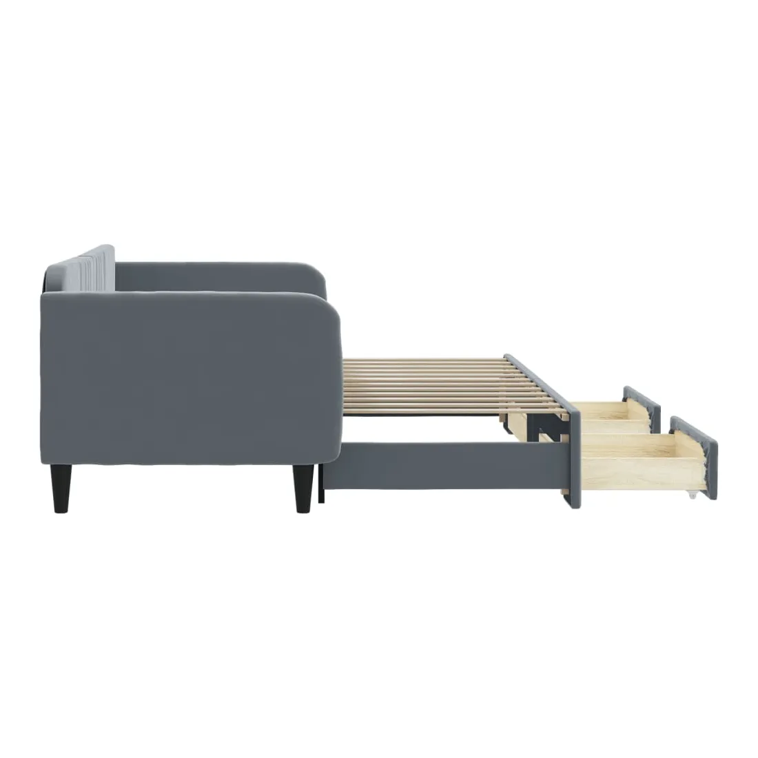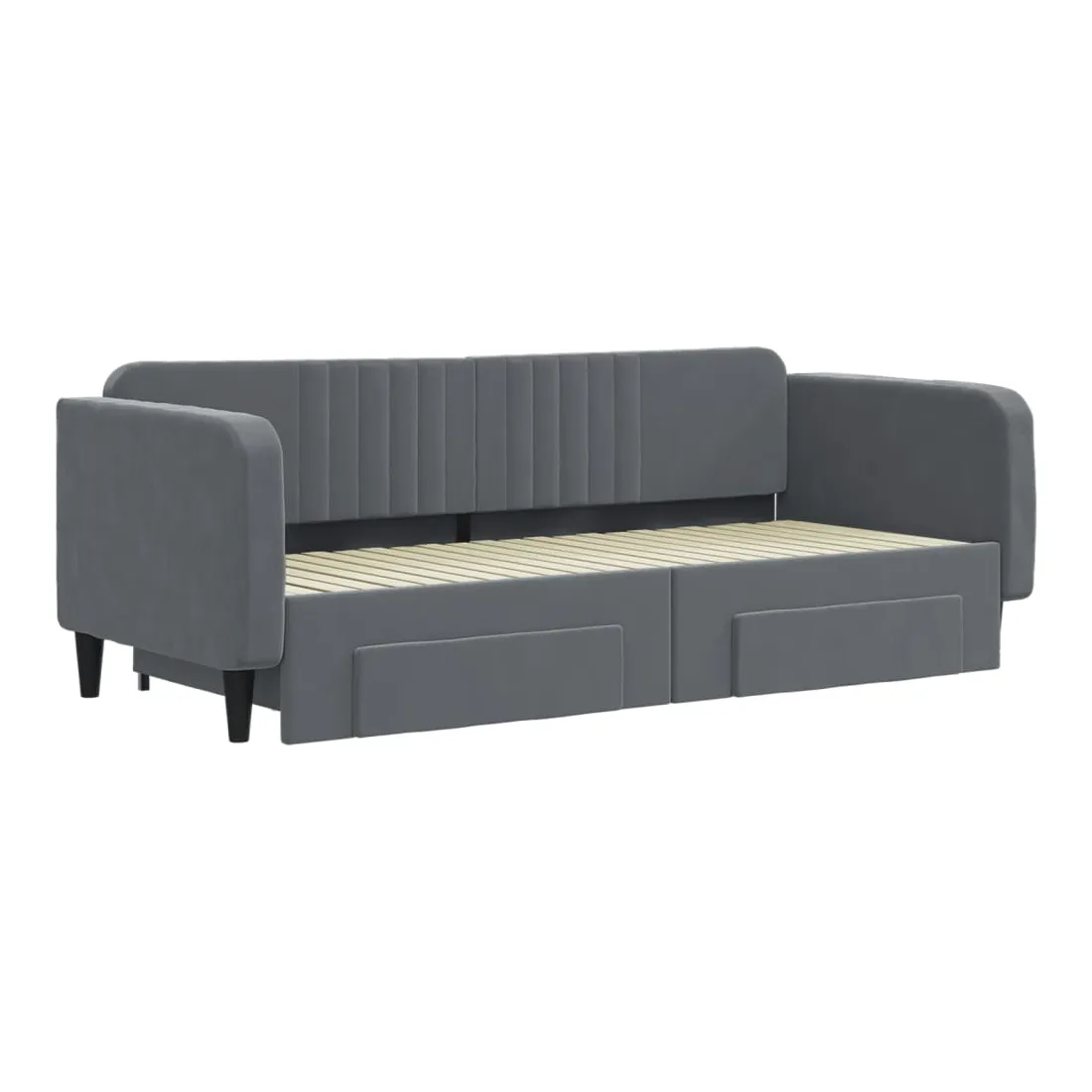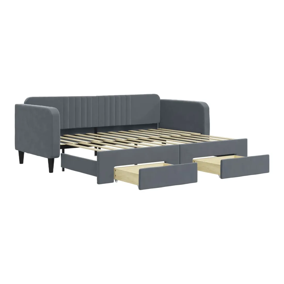 Ce lit de repos 2 en 1 avec lit gigogne, servant à la fois de canapé et de lit, constitue un supplément pratique et accrocheur à votre salon ou chambre à coucher. Lit de repos polyvalent : le canapé-lit fonctionne comme un canapé pendant la journée et se transforme facilement en lit double la nuit en retirant le lit gigogne, offrant une solution pratique pour accueillir des invités et maximiser l'espace.Grand espace de rangement : ce lit d'appoint dispose de deux tiroirs à roulettes qui offrent suffisamment d'espace pour ranger vos vêtements, chaussettes, jouets, coussins, etc.Velours doux et construction solide : ce canapé-lit a un cadre robuste en bois et en métal et est recouvert de velours doux et confortable.Design moderne : le canapé-lit a un design moderne qui présente des lignes épurées, un aspect minimaliste, ainsi que de la lumière naturelle, et ajoutera un style moderne à votre intérieur ! Bon à savoir :Les matelas ne sont pas inclus avec ce lit. Nous proposons une sélection variée de matelas. Vous pouvez consulter notre boutique pour trouver les matelas assortis.