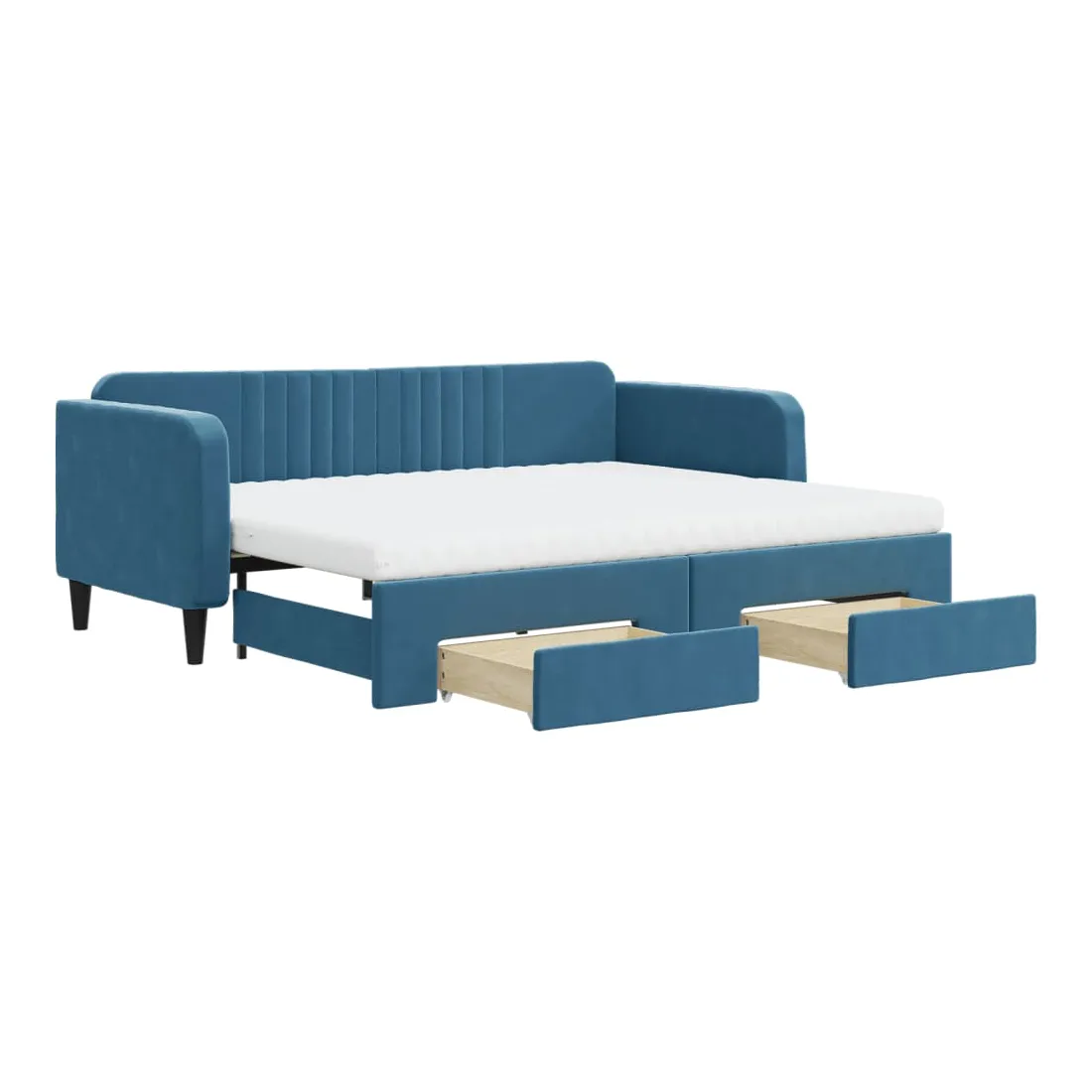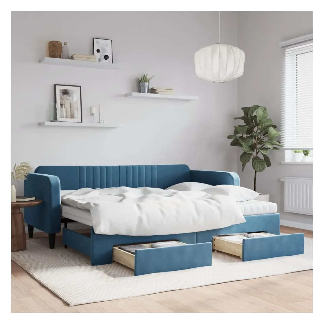 Ce lit de repos 2 en 1 avec lit gigogne, servant à la fois de canapé et de lit, constitue un supplément pratique et accrocheur à votre salon ou chambre à coucher. Lit de repos polyvalent : le canapé-lit fonctionne comme un canapé pendant la journée et se transforme facilement en lit double la nuit en retirant le lit gigogne, offrant une solution pratique pour accueillir des invités et maximiser l'espace.Grand espace de rangement : ce lit d'appoint dispose de deux tiroirs à roulettes qui offrent suffisamment d'espace pour ranger vos vêtements, chaussettes, jouets, coussins, etc.Matelas en mousse confortable : ce lit est fourni avec deux matelas en mousse pour un soutien maximal et un confort optimal.Velours doux et construction solide : ce canapé-lit a un cadre robuste en bois et en métal et est recouvert de velours doux et confortable.