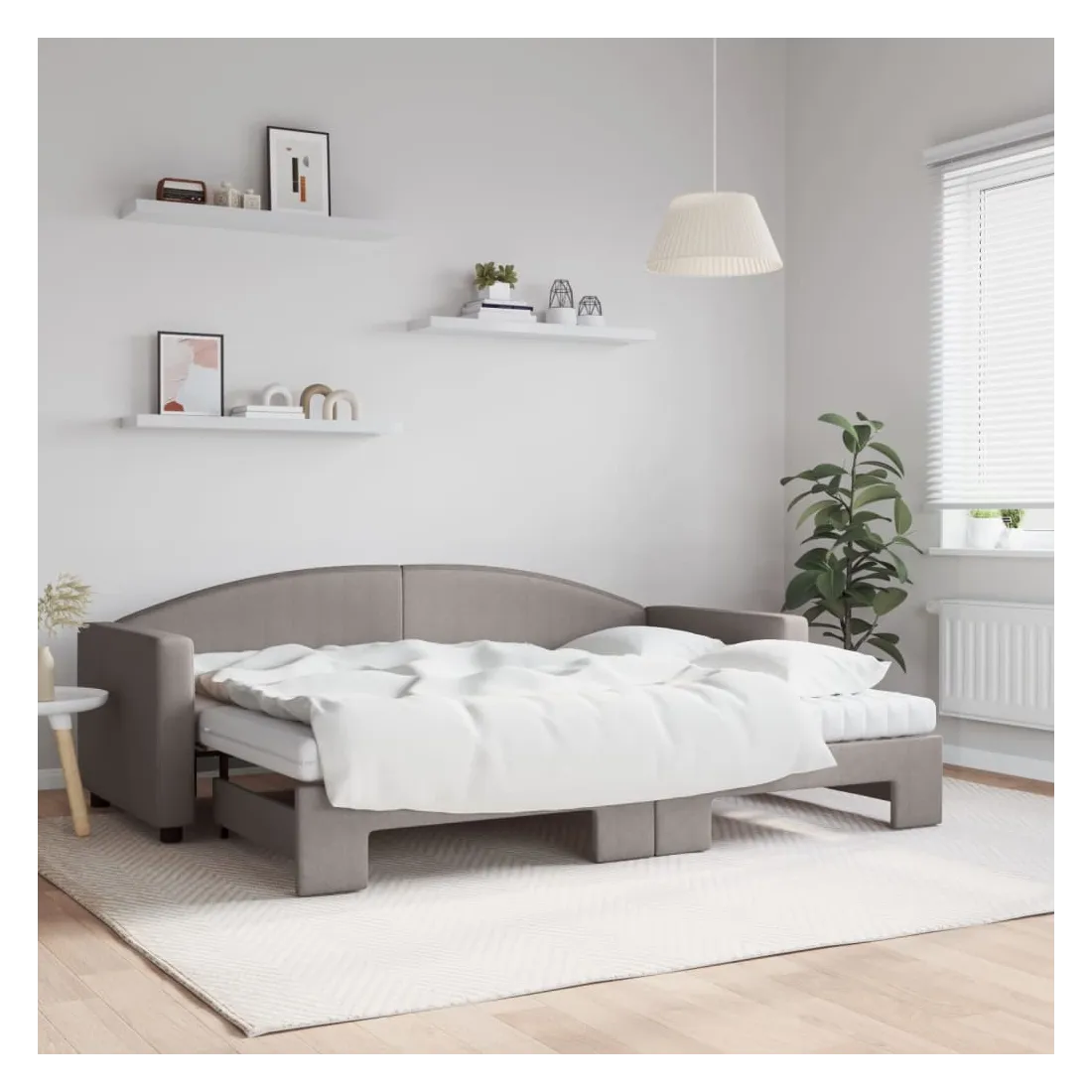 Ce lit de repos 2 en 1 avec lit gigogne, servant à la fois de canapé et de lit, constitue un supplément pratique et accrocheur à votre salon ou chambre à coucher. Lit de repos polyvalent : le canapé-lit fonctionne comme un canapé pendant la journée et se transforme facilement en lit double la nuit en retirant le lit gigogne, offrant une solution pratique pour accueillir des invités et maximiser l'espace.Matelas en mousse confortable : ce lit est fourni avec deux matelas en mousse pour un soutien maximal et un confort optimal.Tissu durable et construction solide : ce canapé-lit a une structure robuste en bois et en métal et est recouvert d'un tissu durable et confortable.Design moderne : le canapé-lit a un design moderne qui présente des lignes épurées, un aspect minimaliste, ainsi que de la lumière naturelle, et ajoutera un style moderne à votre intérieur !
