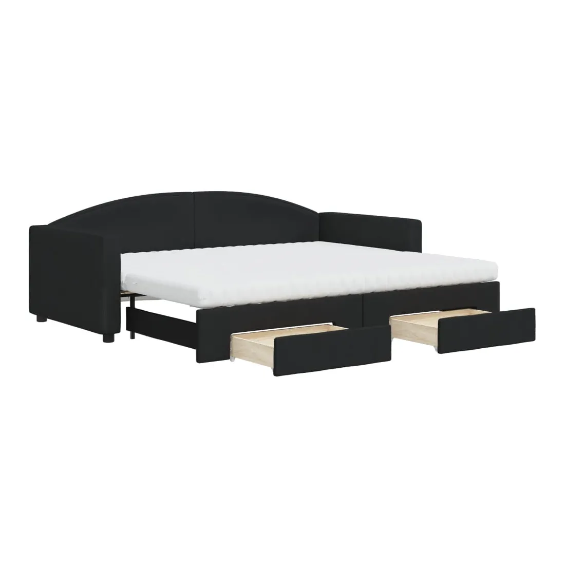 Ce lit de repos 2 en 1 avec lit gigogne, servant à la fois de canapé et de lit, constitue un supplément pratique et accrocheur à votre salon ou chambre à coucher. Lit de repos polyvalent : le canapé-lit fonctionne comme un canapé pendant la journée et se transforme facilement en lit double la nuit en retirant le lit gigogne, offrant une solution pratique pour accueillir des invités et maximiser l'espace.Grand espace de rangement : ce lit d'appoint dispose de deux tiroirs à roulettes qui offrent suffisamment d'espace pour ranger vos vêtements, chaussettes, jouets, coussins, etc.Matelas en mousse confortable : ce lit est fourni avec deux matelas en mousse pour un soutien maximal et un confort optimal.Tissu durable et construction solide : ce canapé-lit a une structure robuste en bois et en métal et est recouvert d'un tissu durable et confortable.