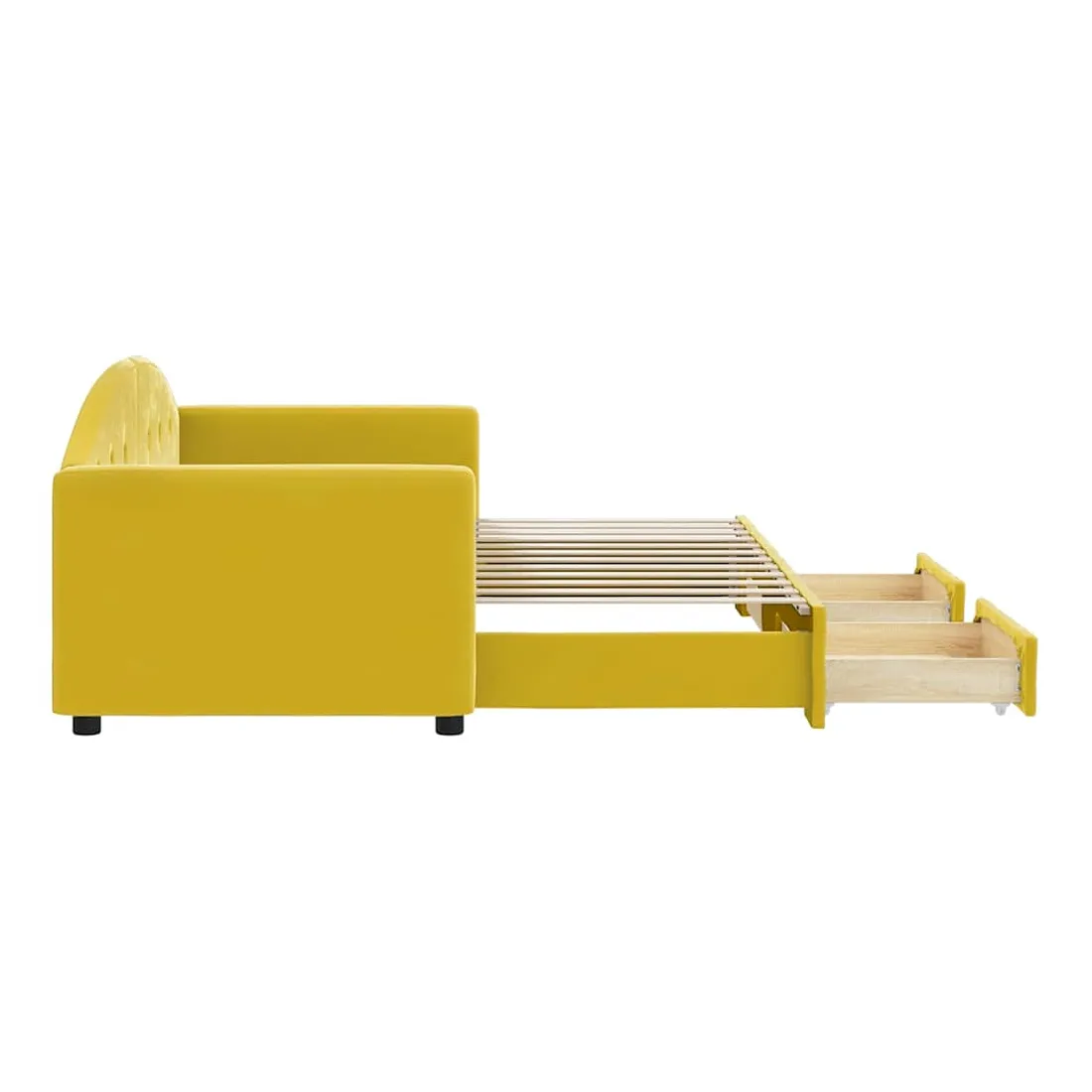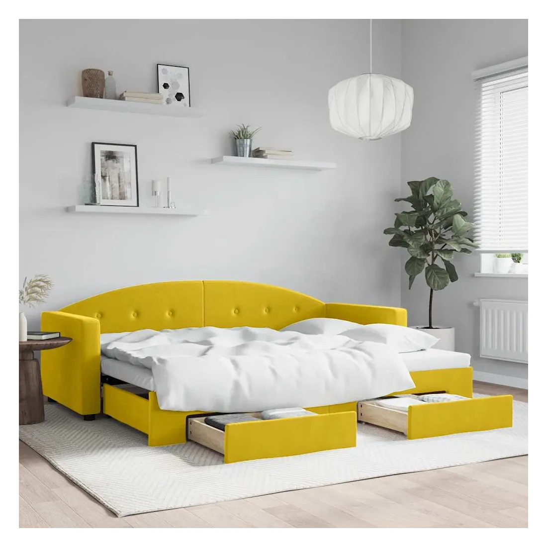 Lit de jour avec gigogne et tiroirs jaune 80x200 cm velours