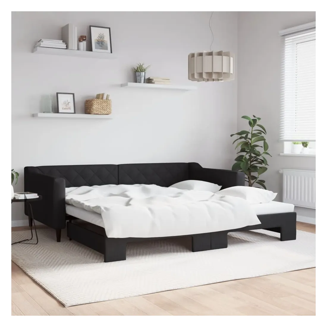 Ce lit de repos 2 en 1 avec lit gigogne, servant à la fois de canapé et de lit, constitue un supplément pratique et accrocheur à votre salon ou chambre à coucher. Lit de repos polyvalent : le canapé-lit fonctionne comme un canapé pendant la journée et se transforme facilement en lit double la nuit en retirant le lit gigogne, offrant une solution pratique pour accueillir des invités et maximiser l'espace.Tissu durable et construction solide : ce canapé-lit a une structure robuste en bois et en métal et est recouvert d'un tissu durable et confortable.Design moderne : le canapé-lit a un design moderne qui présente des lignes épurées, un aspect minimaliste, et ajoutera un style moderne à votre intérieur ! Bon à savoir :Les matelas ne sont pas inclus avec ce lit. Nous proposons une sélection variée de matelas. Vous pouvez consulter notre boutique pour trouver les matelas assortis.