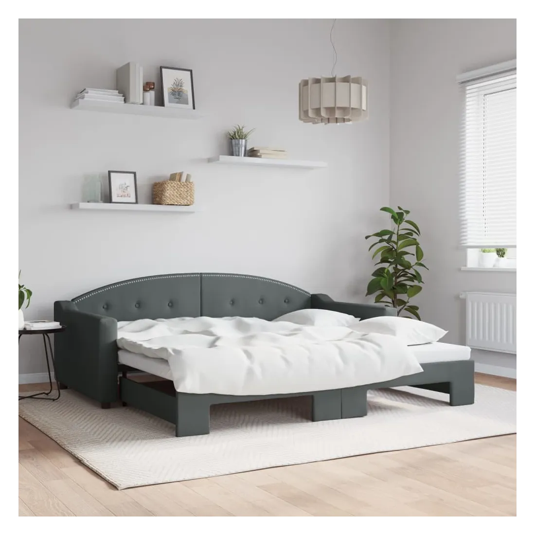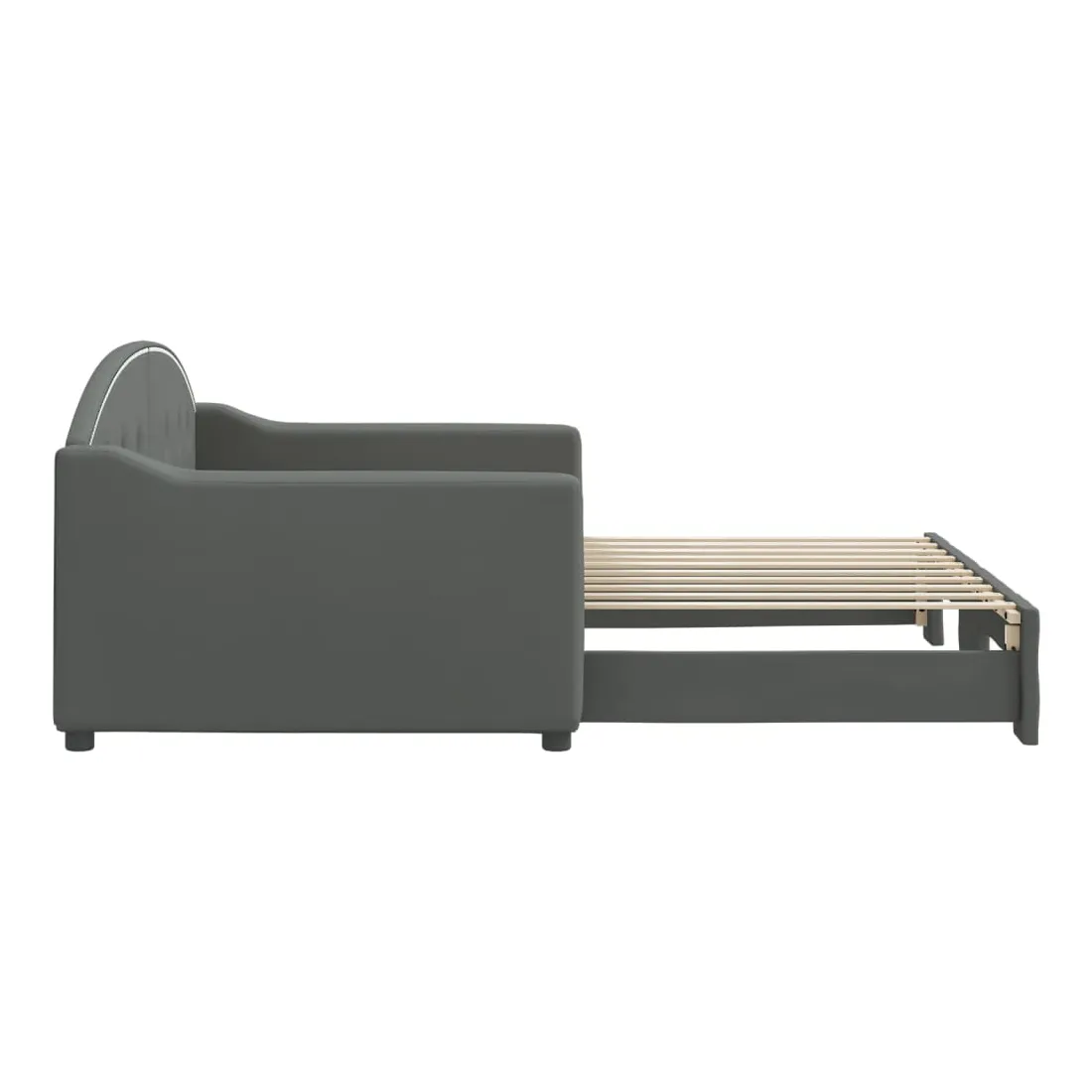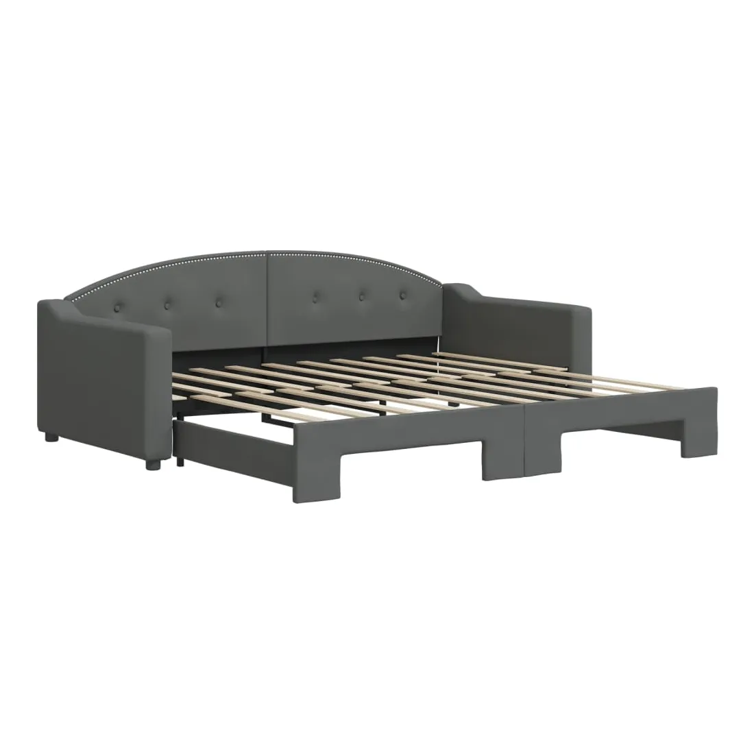Lit de jour avec gigogne sans matelas gris foncé 90x190 cm