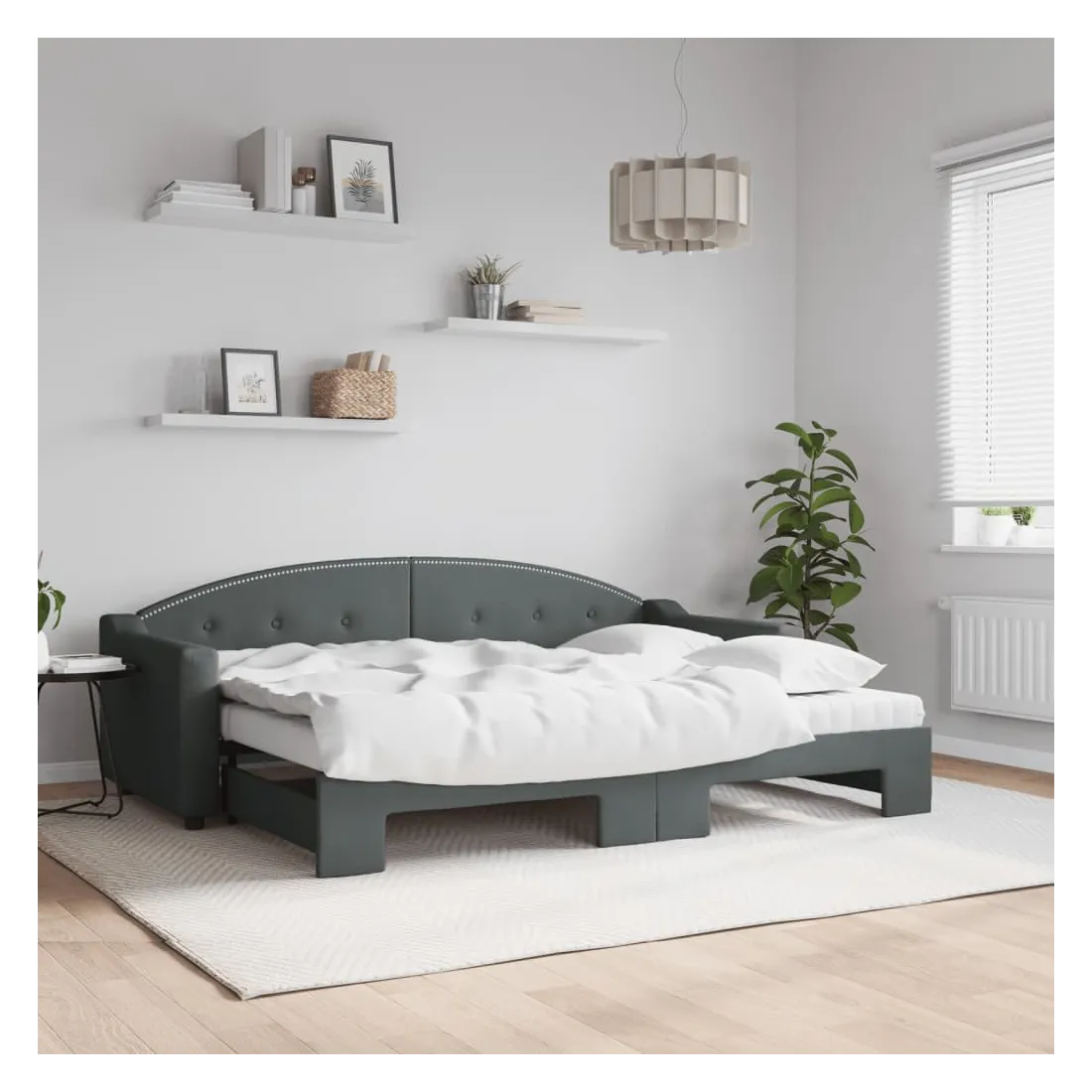 Ce lit de repos 2 en 1 avec lit gigogne, servant à la fois de canapé et de lit, constitue un supplément pratique et accrocheur à votre salon ou chambre à coucher. Lit de repos polyvalent : le canapé-lit fonctionne comme un canapé pendant la journée et se transforme facilement en lit double la nuit en retirant le lit gigogne, offrant une solution pratique pour accueillir des invités et maximiser l'espace. Matelas en mousse confortable : ce lit est fourni avec deux matelas en mousse pour un soutien maximal et un confort optimal. Tissu durable et construction solide : ce canapé-lit a une structure robuste en bois et en métal et est recouvert d'un tissu durable et confortable.