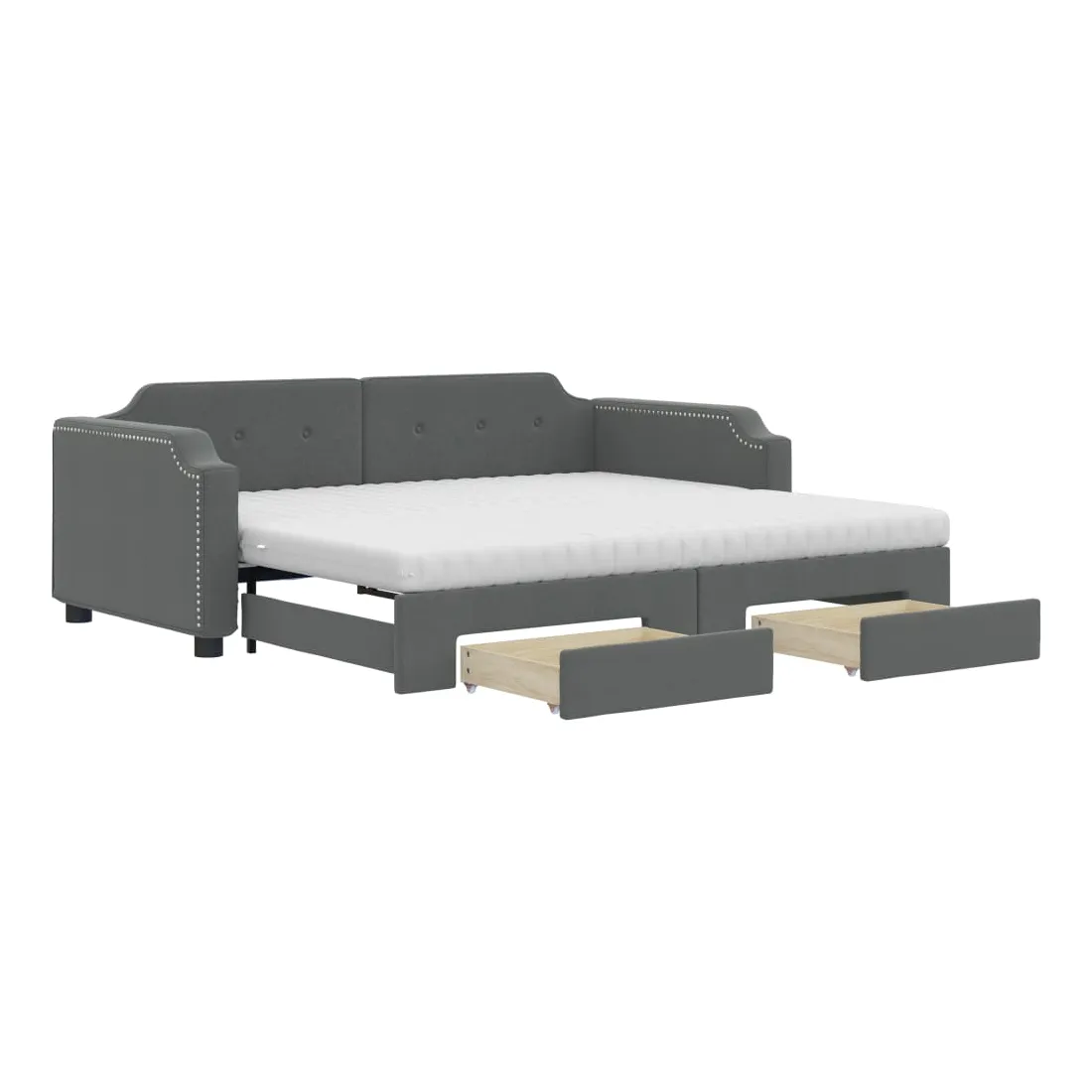 Ce lit de repos 2 en 1 avec lit gigogne, servant à la fois de canapé et de lit, constitue un supplément pratique et accrocheur à votre salon ou chambre à coucher. Lit de repos polyvalent : le canapé-lit fonctionne comme un canapé pendant la journée et se transforme facilement en lit double la nuit en retirant le lit gigogne, offrant une solution pratique pour accueillir des invités et maximiser l'espace. Grand espace de rangement : ce lit d'appoint dispose de deux tiroirs à roulettes qui offrent suffisamment d'espace pour ranger vos vêtements, chaussettes, jouets, coussins, etc. Matelas en mousse confortable : ce lit est fourni avec deux matelas en mousse pour un soutien maximal et un confort optimal. Tissu durable et construction solide : ce canapé-lit a une structure robuste en bois et en métal et est recouvert d'un tissu durable et confortable.