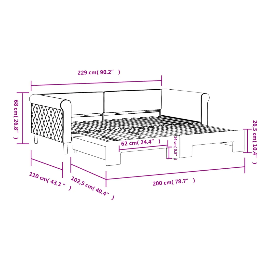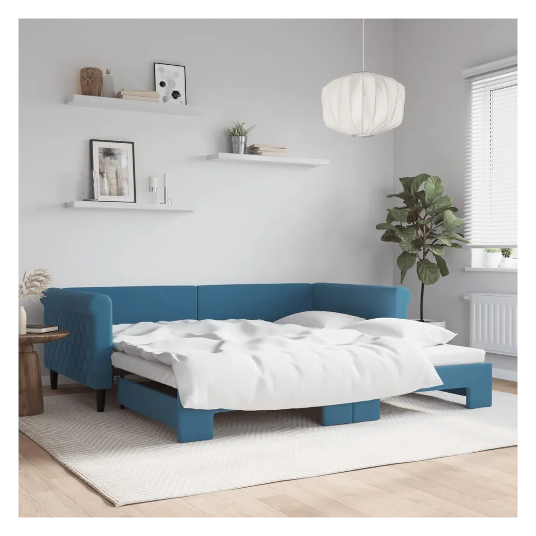 Ce lit de repos 2 en 1 avec lit gigogne, servant à la fois de canapé et de lit, constitue un supplément pratique et accrocheur à votre salon ou chambre à coucher. Lit de repos polyvalent : le canapé-lit fonctionne comme un canapé pendant la journée et se transforme facilement en lit double la nuit en retirant le lit gigogne, offrant une solution pratique pour accueillir des invités et maximiser l'espace.Velours doux et construction solide : ce canapé-lit a un cadre robuste en bois et en métal et est recouvert de velours doux et confortable.Design moderne : le canapé-lit a un design moderne qui présente des lignes épurées, un aspect minimaliste, ainsi que de la lumière naturelle, et ajoutera un style moderne à votre intérieur ! Bon à savoir :Les matelas ne sont pas inclus avec ce lit. Nous proposons une sélection variée de matelas. Vous pouvez consulter notre boutique pour trouver les matelas assortis.
