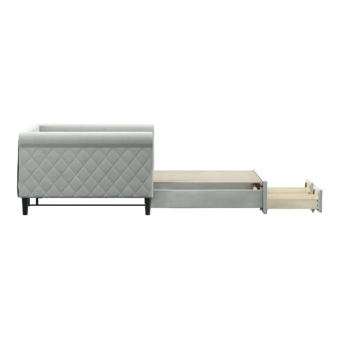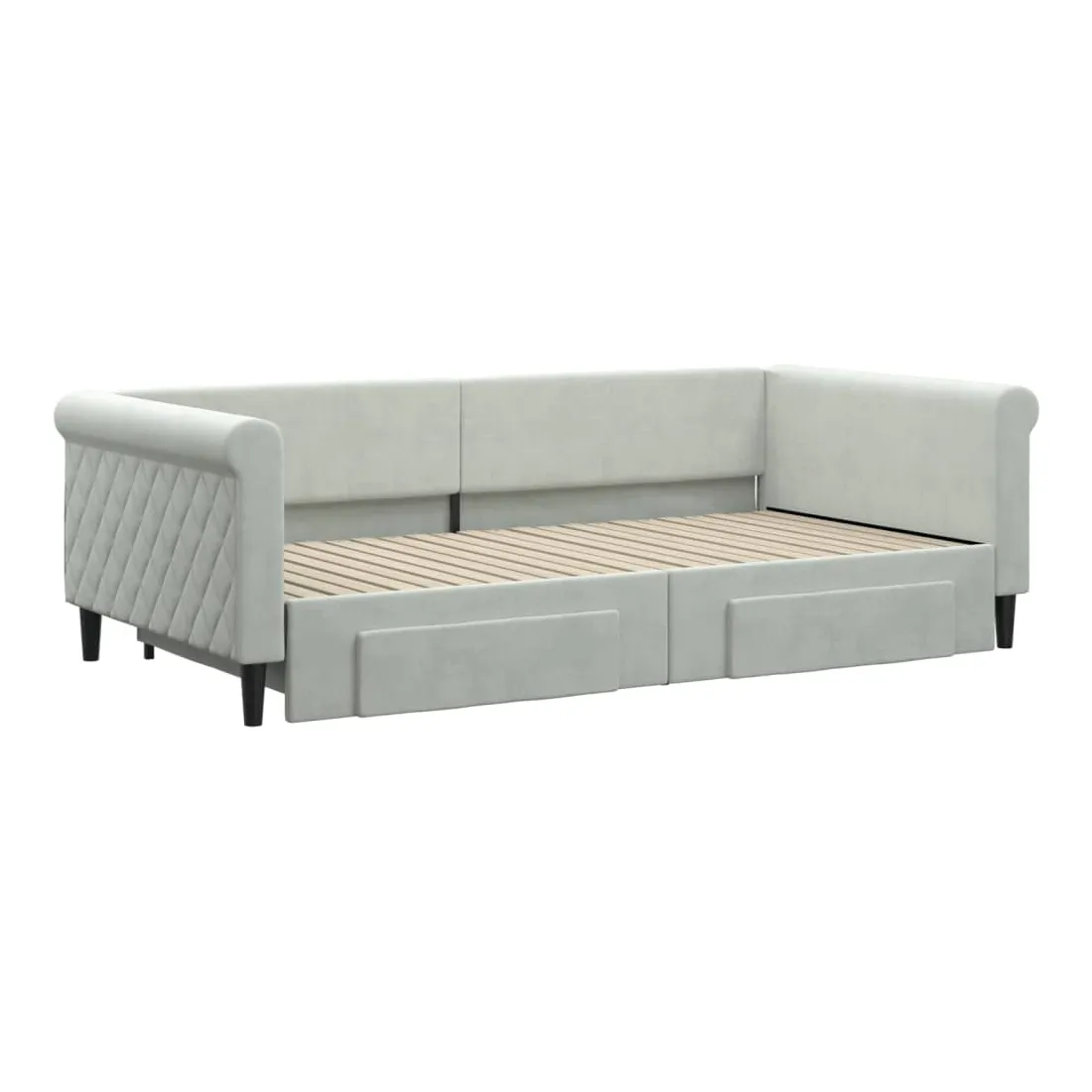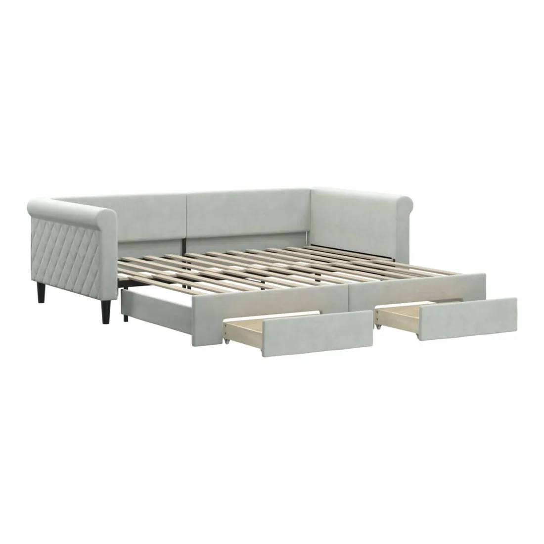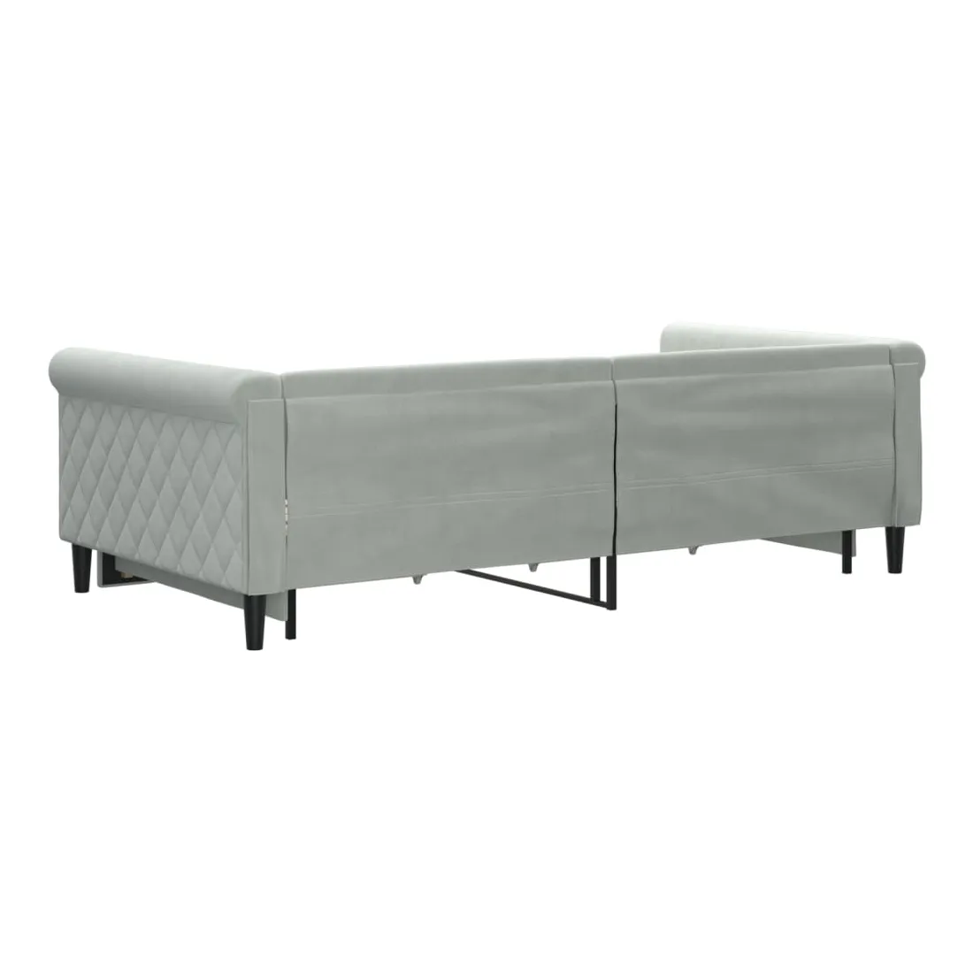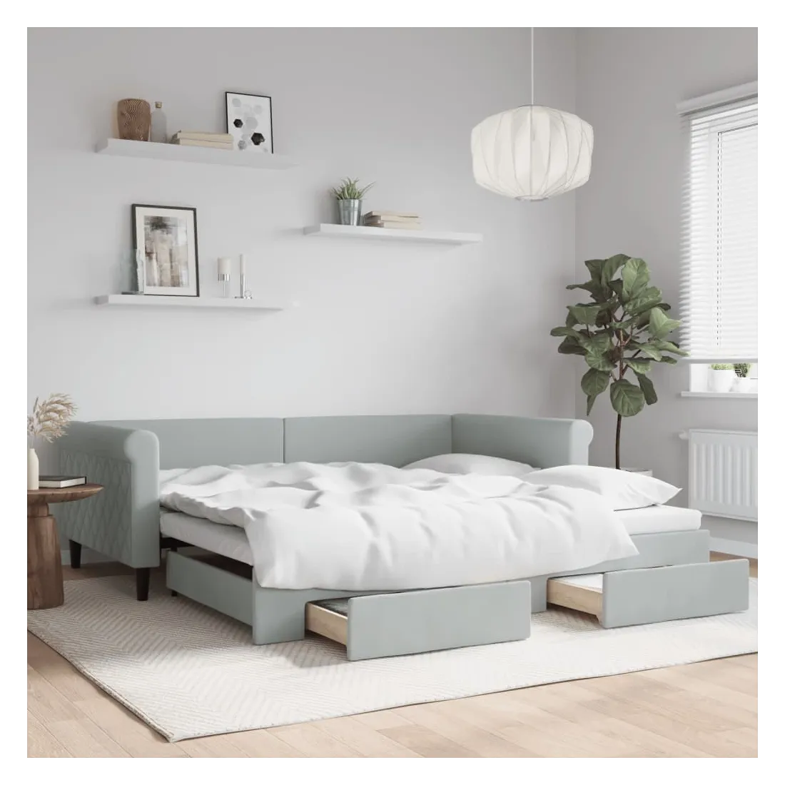 Ce lit de repos 2 en 1 avec lit gigogne, servant à la fois de canapé et de lit, constitue un supplément pratique et accrocheur à votre salon ou chambre à coucher. Lit de repos polyvalent : le canapé-lit fonctionne comme un canapé pendant la journée et se transforme facilement en lit double la nuit en retirant le lit gigogne, offrant une solution pratique pour accueillir des invités et maximiser l'espace.Grand espace de rangement : ce lit d'appoint dispose de deux tiroirs à roulettes qui offrent suffisamment d'espace pour ranger vos vêtements, chaussettes, jouets, coussins, etc.Velours doux et construction solide : ce canapé-lit a un cadre robuste en bois et en métal et est recouvert de velours doux et confortable.Design moderne : le canapé-lit a un design moderne qui présente des lignes épurées, un aspect minimaliste, ainsi que de la lumière naturelle, et ajoutera un style moderne à votre intérieur ! Bon à savoir :Les matelas ne sont pas inclus avec ce lit. Nous proposons une sélection variée de matelas. Vous pouvez consulter notre boutique pour trouver les matelas assortis.