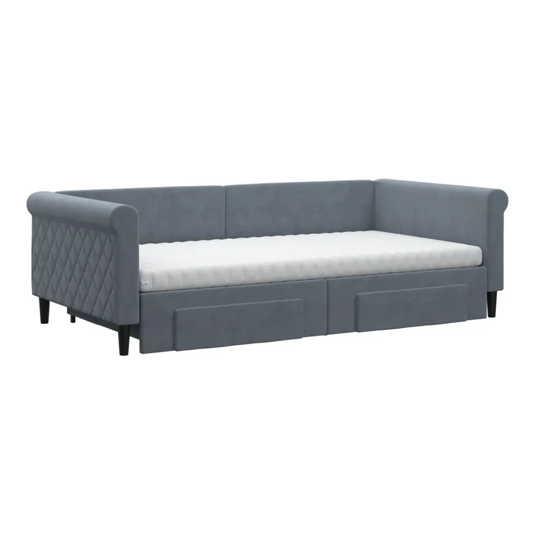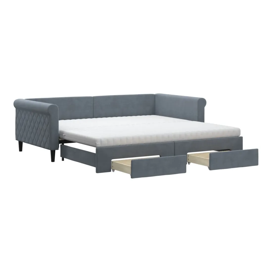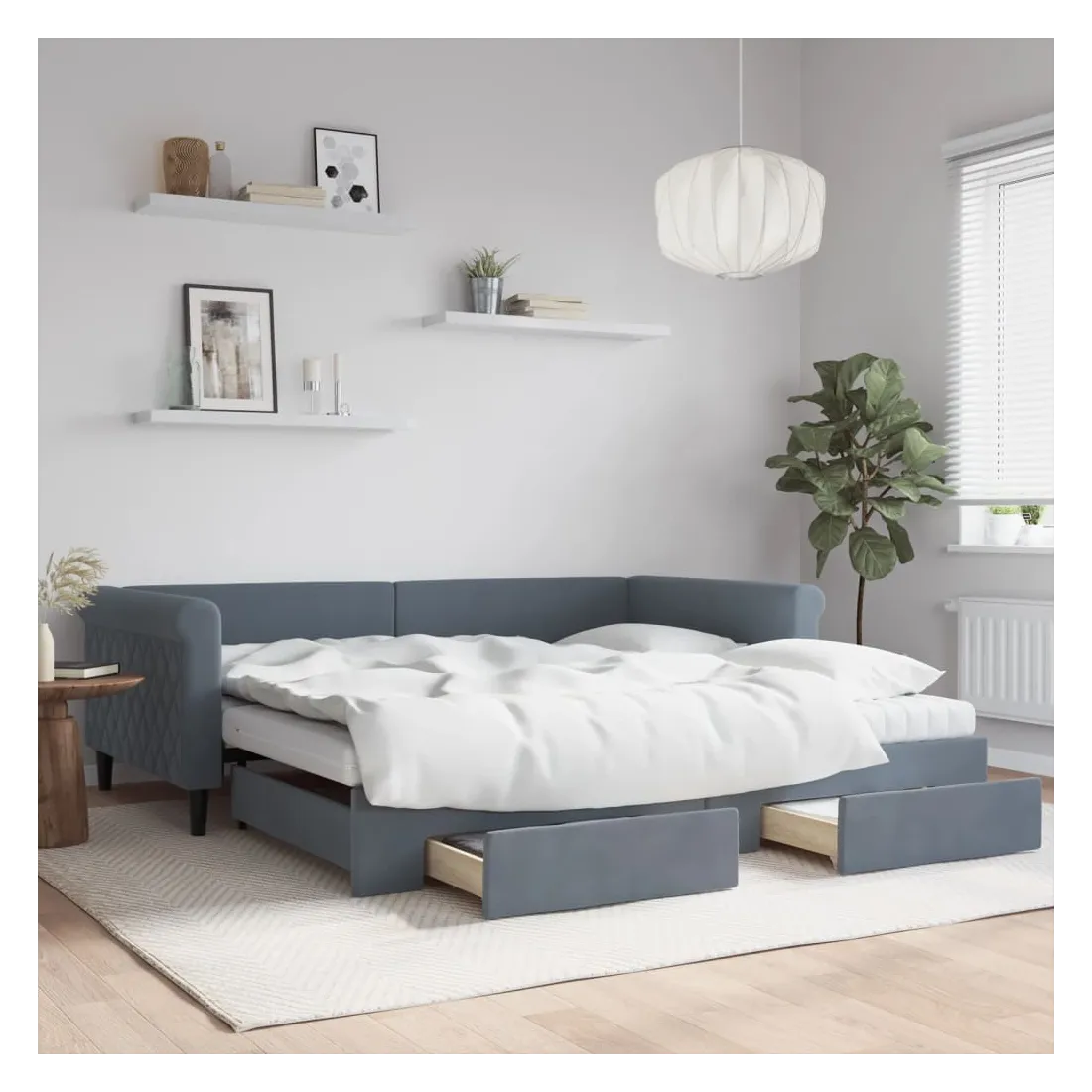 Ce lit de repos 2 en 1 avec lit gigogne, servant à la fois de canapé et de lit, constitue un supplément pratique et accrocheur à votre salon ou chambre à coucher. Lit de repos polyvalent : le canapé-lit fonctionne comme un canapé pendant la journée et se transforme facilement en lit double la nuit en retirant le lit gigogne, offrant une solution pratique pour accueillir des invités et maximiser l'espace.Grand espace de rangement : ce lit d'appoint dispose de deux tiroirs à roulettes qui offrent suffisamment d'espace pour ranger vos vêtements, chaussettes, jouets, coussins, etc.Matelas en mousse confortable : ce lit est fourni avec deux matelas en mousse pour un soutien maximal et un confort optimal.Velours doux et construction solide : ce canapé-lit a un cadre robuste en bois et en métal et est recouvert de velours doux et confortable.