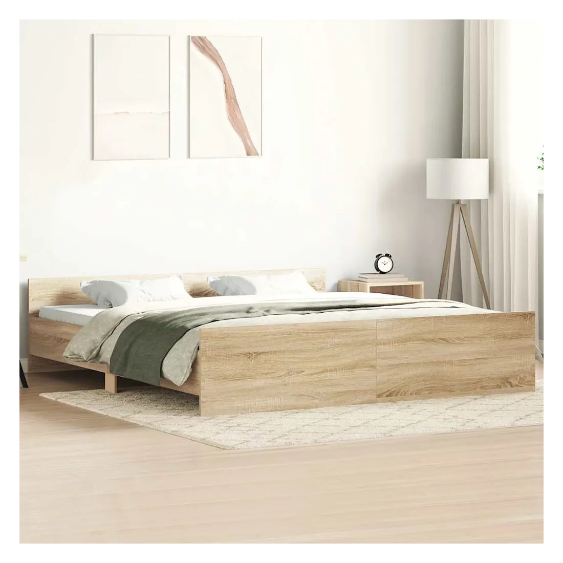 Obtenez une meilleure nuit de sommeil reposante grâce à ce cadre de lit ! Il est un supplément accueillant à toute chambre à coucher. Matériau durable : le bois d'ingénierie est d'une qualité exceptionnelle avec une surface lisse et présente également résistance, stabilité et résistance à l'humidité.Tête de lit et pied de lit fonctionnels : la tête et le pied de lit du sommier maintiennent votre matelas en place. De plus, la tête de lit vous offre un excellent soutien du dos lorsque vous vous asseyez dans le lit pour lire ou regarder la télévision.Lattes robustes : les lattes de contreplaqué assurent une bonne répartition du poids, garantissant que le matelas reste en place à chaque torsion de votre corps pendant le sommeil. Bon à savoir :Un matelas n'est pas inclus avec ce lit. Nous offrons une sélection variée de matelas. Vous pouvez consulter notre boutique pour trouver un matelas assorti.