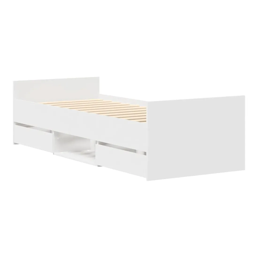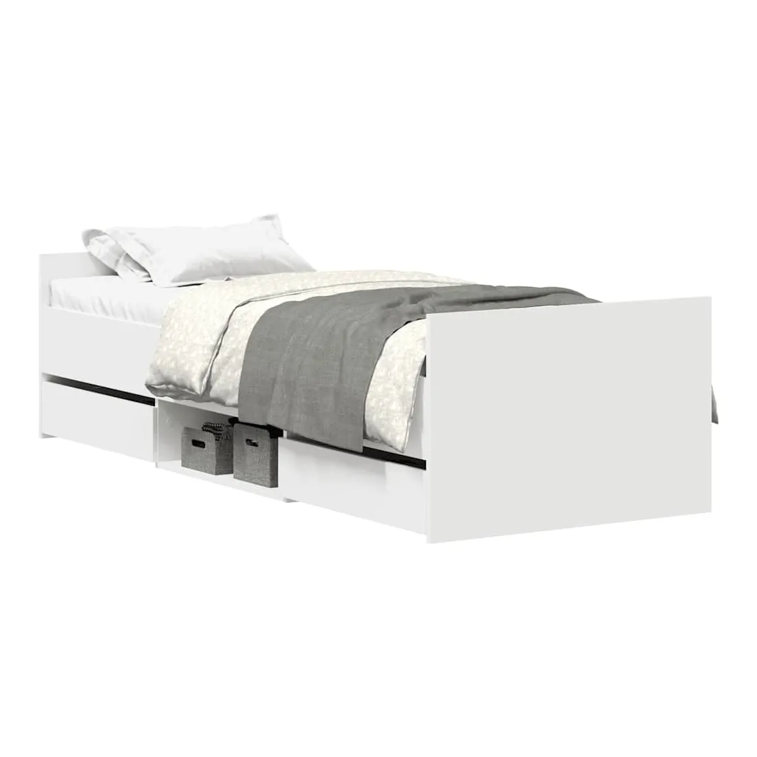 Obtenez une meilleure nuit de sommeil reposante grâce à ce cadre de lit ! Il est un supplément accueillant à toute chambre à coucher. Matériau durable : le bois d'ingénierie est d'une qualité exceptionnelle avec une surface lisse et présente également résistance, stabilité et résistance à l'humidité.Tête de lit et pied de lit fonctionnels : la tête et le pied de lit du sommier maintiennent votre matelas en place. De plus, la tête de lit vous offre un excellent soutien du dos lorsque vous vous asseyez dans le lit pour lire ou regarder la télévision.Grand espace de rangement : ce lit d'appoint dispose de 4 tiroirs et des étagères qui offrent suffisamment d'espace pour ranger vos vêtements, chaussettes, jouets, coussins, etc.Lattes robustes : les lattes de contreplaqué assurent une bonne répartition du poids, garantissant que le matelas reste en place à chaque torsion de votre corps pendant le sommeil. Bon à savoir :Un matelas n'est pas inclus avec ce lit. Nous offrons une sélection variée de matelas. Vous pouvez consulter notre boutique pour trouver un matelas assorti.