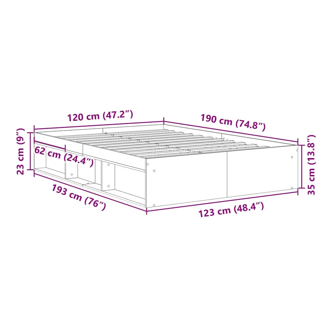 - Dimensions totales : 193 x 123 x 35 cm (L x l x H)