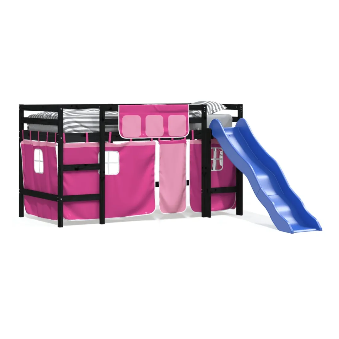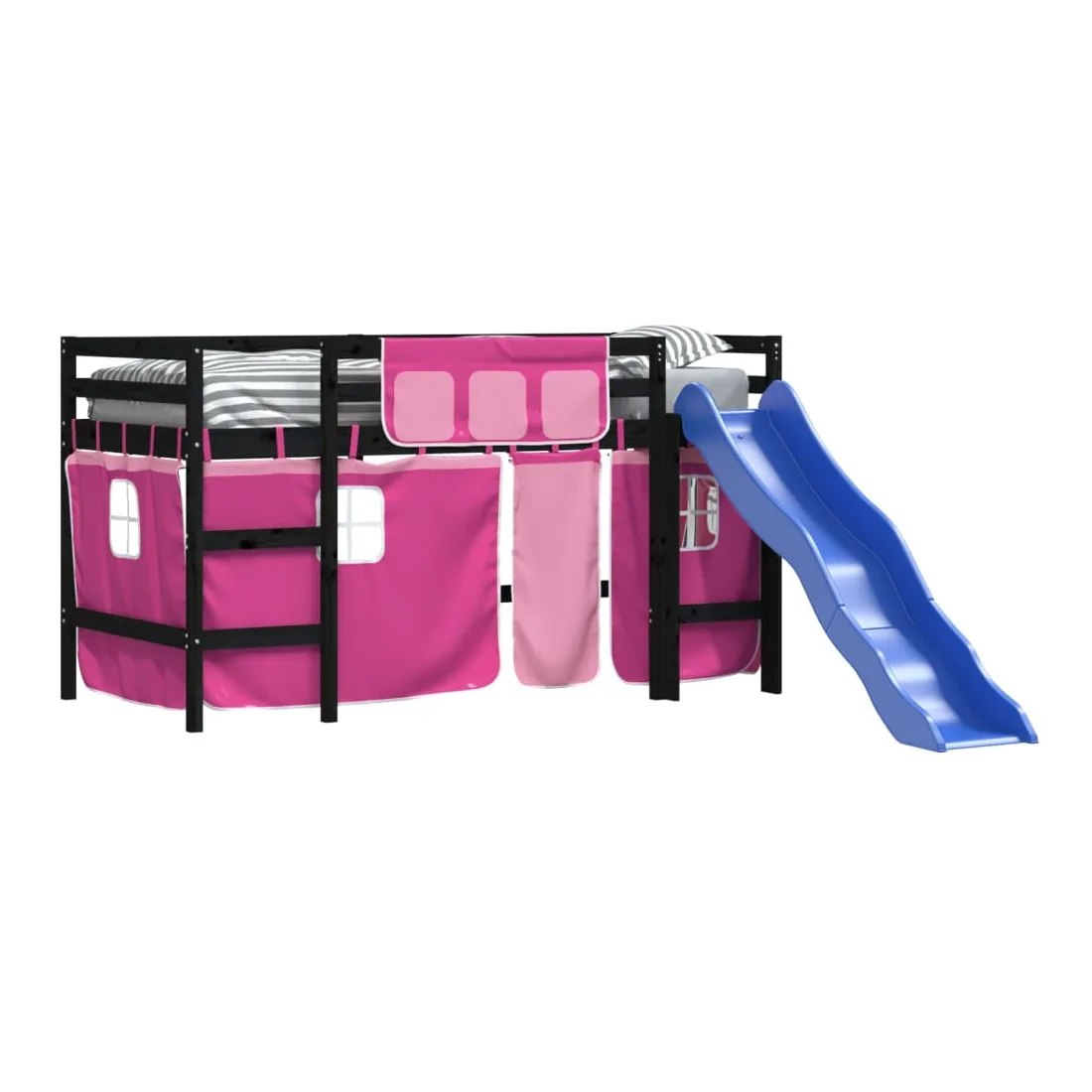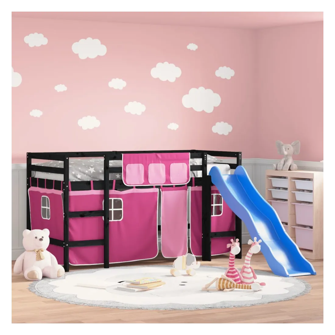 Lit mezzanine enfants avec rideaux sans matelas rose 80x200cm