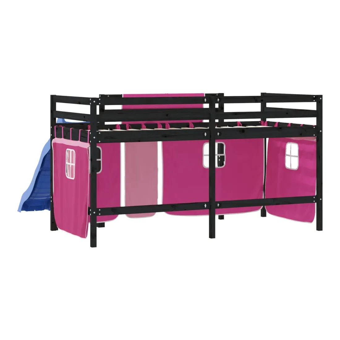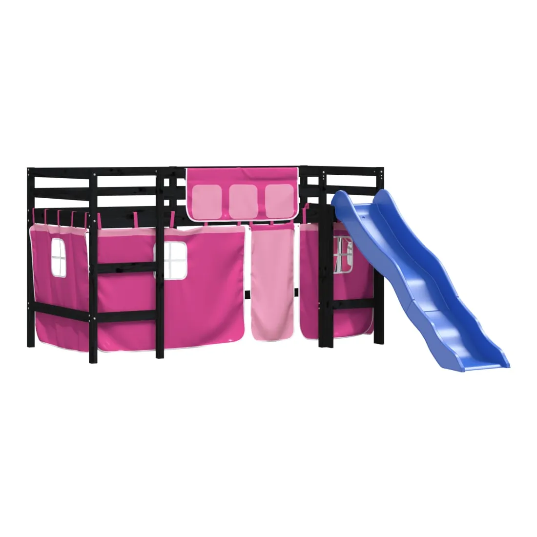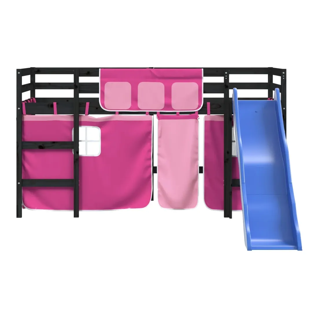 Lit mezzanine enfants avec rideaux sans matelas rose 80x200cm