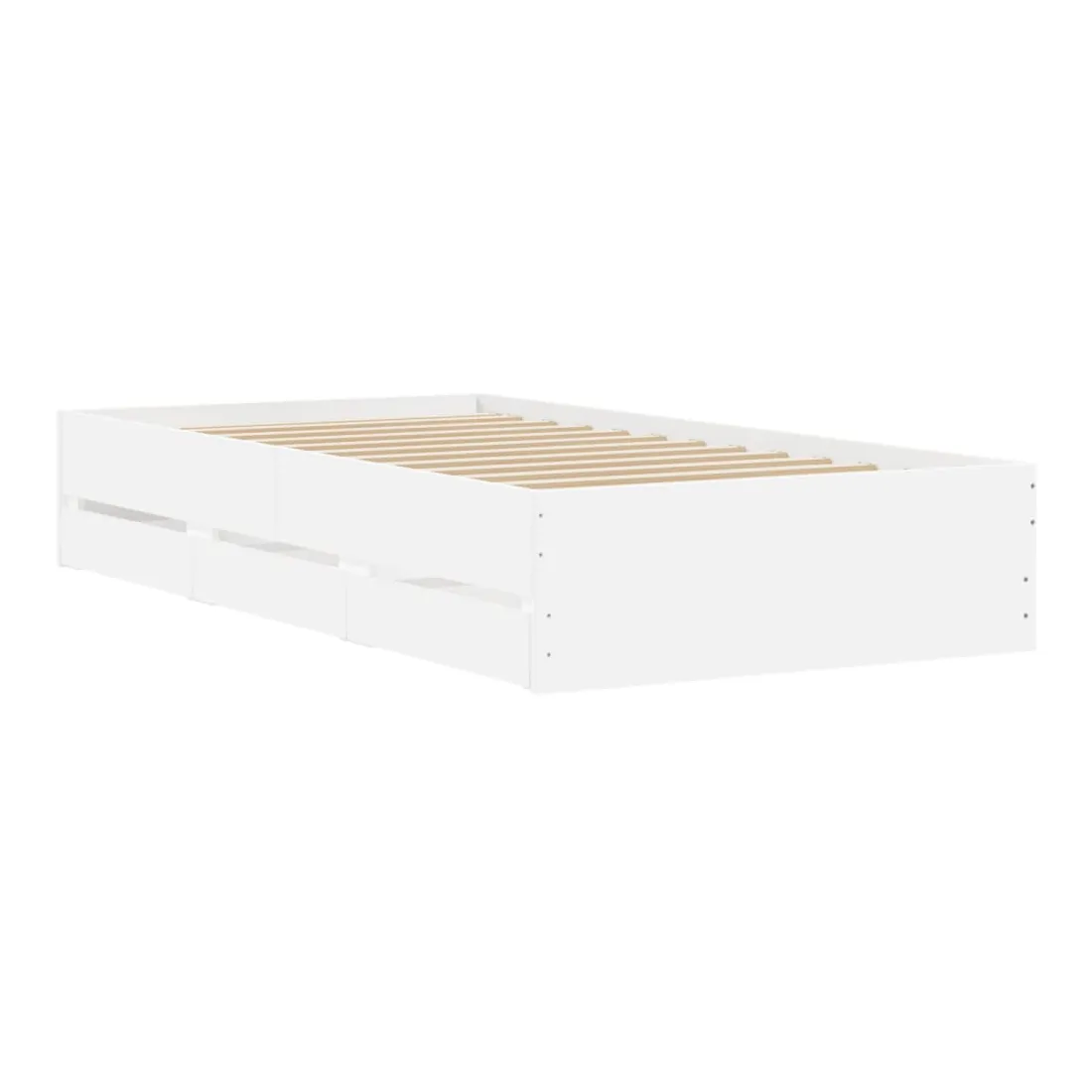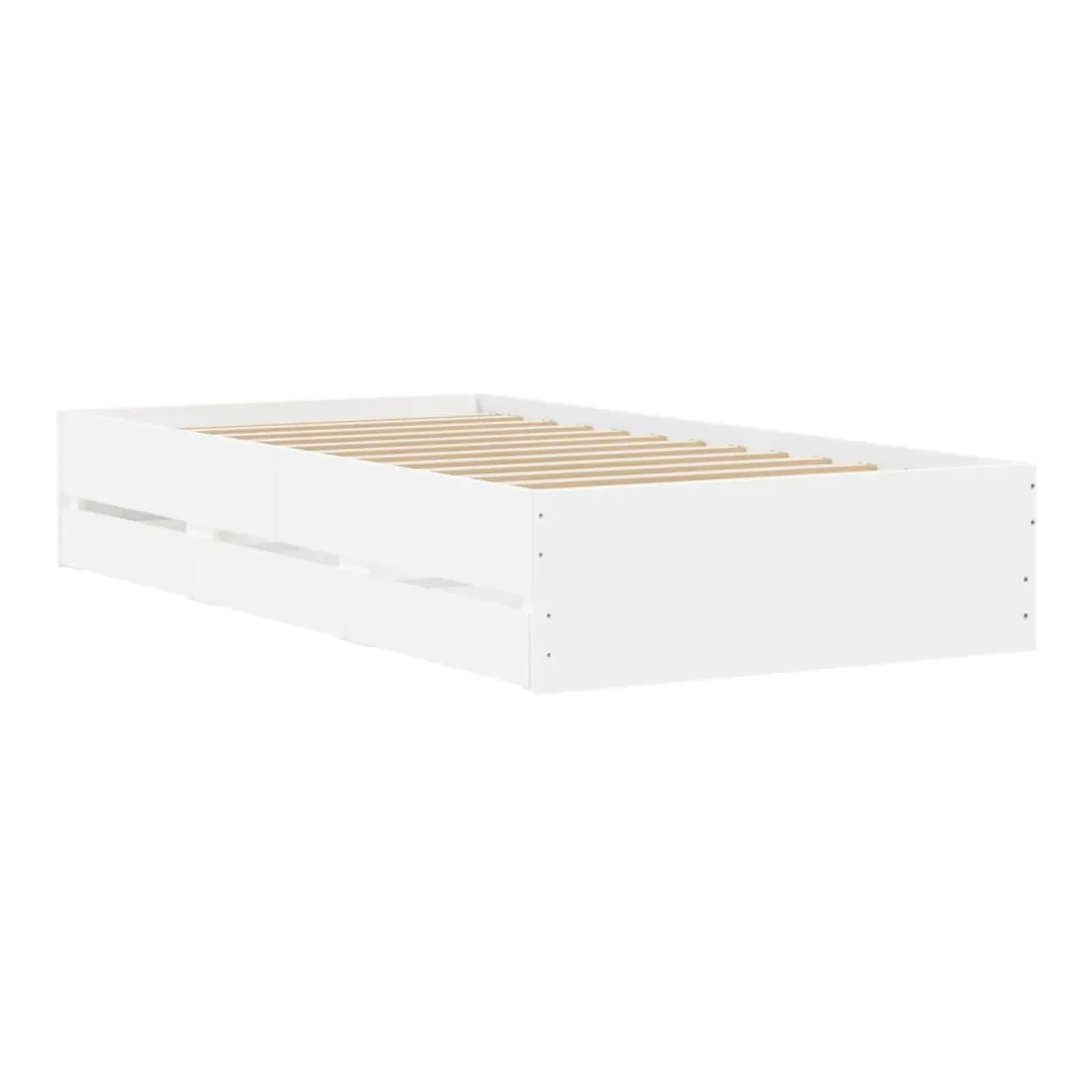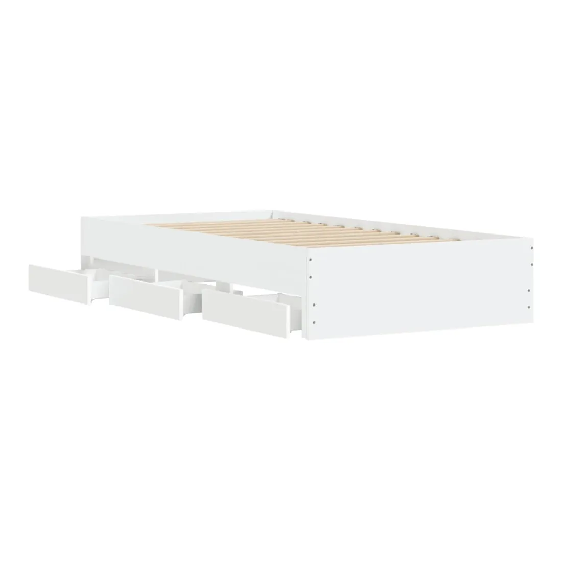 Ajoutez une touche moderne à votre chambre à coucher avec ce cadre de lit avec tiroirs ! Il apportera une touche pratique et décorative à votre espace de vie. Matériau durable : le cadre de lit est fabriquée en bois d'ingénierie. Le bois d'ingénierie est d'une qualité exceptionnelle avec une surface lisse et présente également de la résistance, de la stabilité et de la résistance à l'humidité.Lattes robustes : les lattes de contreplaqué assurent une bonne répartition du poids, garantissant que le matelas reste en place à chaque torsion de votre corps pendant le sommeil.Fonction de rangement : les tiroirs de lit inclus offrent suffisamment d'espace de rangement pour ranger vos articles essentiels, gardant votre pièce propre et bien rangée. Bon à savoir :Un matelas n'est pas inclus avec ce lit. Nous offrons une sélection variée de matelas. Vous pouvez consulter notre boutique pour trouver un matelas assorti.