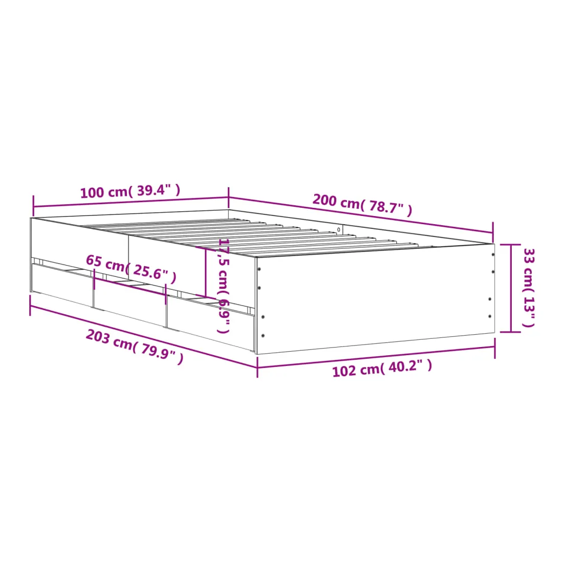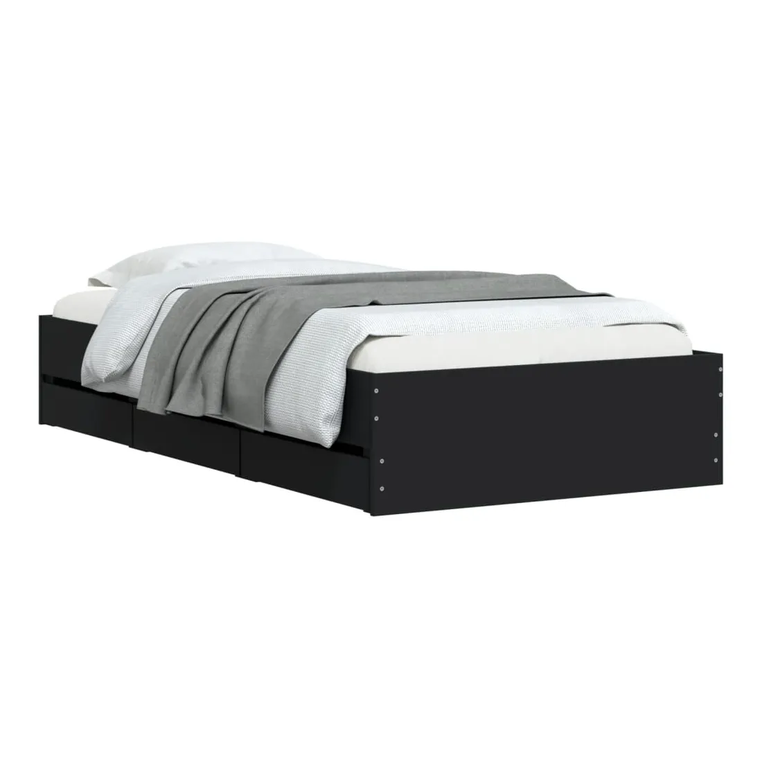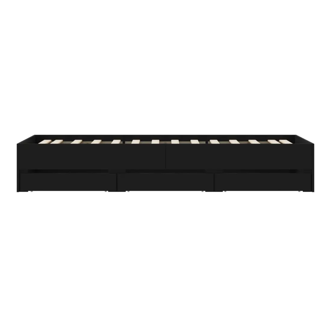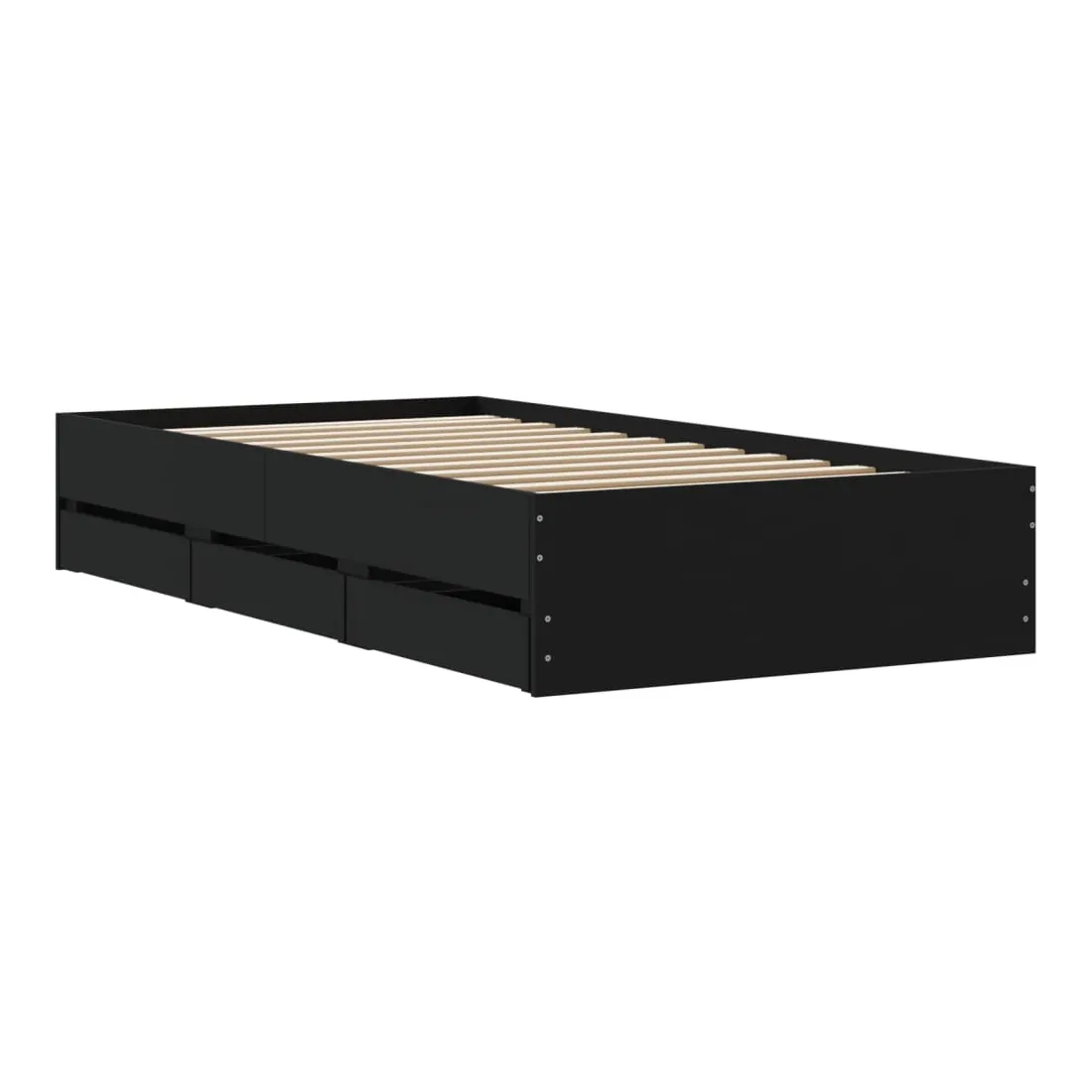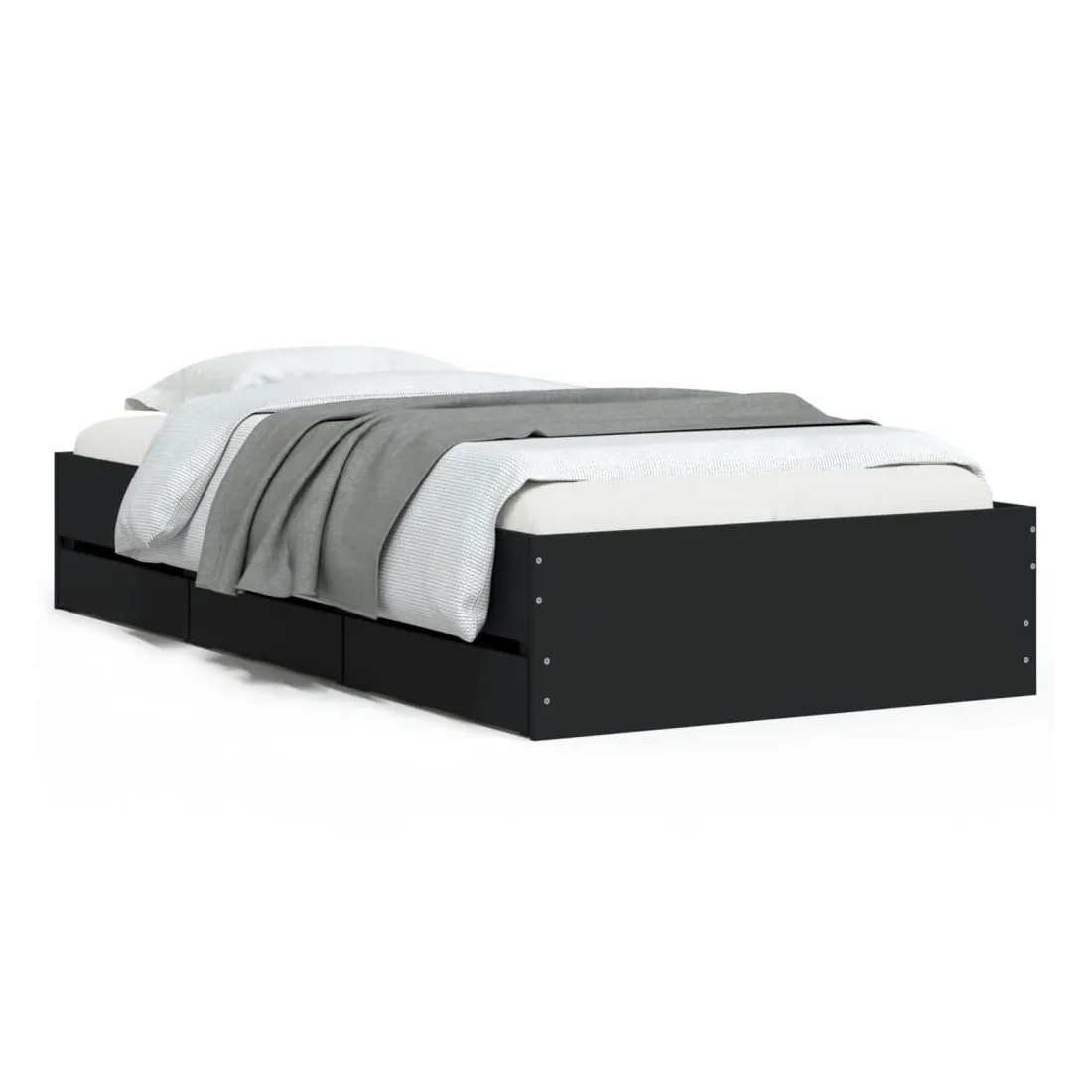 Ajoutez une touche moderne à votre chambre à coucher avec ce cadre de lit avec tiroirs ! Il apportera une touche pratique et décorative à votre espace de vie. Matériau durable : le cadre de lit est fabriquée en bois d'ingénierie. Le bois d'ingénierie est d'une qualité exceptionnelle avec une surface lisse et présente également de la résistance, de la stabilité et de la résistance à l'humidité.Lattes robustes : les lattes de contreplaqué assurent une bonne répartition du poids, garantissant que le matelas reste en place à chaque torsion de votre corps pendant le sommeil.Fonction de rangement : les tiroirs de lit inclus offrent suffisamment d'espace de rangement pour ranger vos articles essentiels, gardant votre pièce propre et bien rangée. Bon à savoir :Un matelas n'est pas inclus avec ce lit. Nous offrons une sélection variée de matelas. Vous pouvez consulter notre boutique pour trouver un matelas assorti.